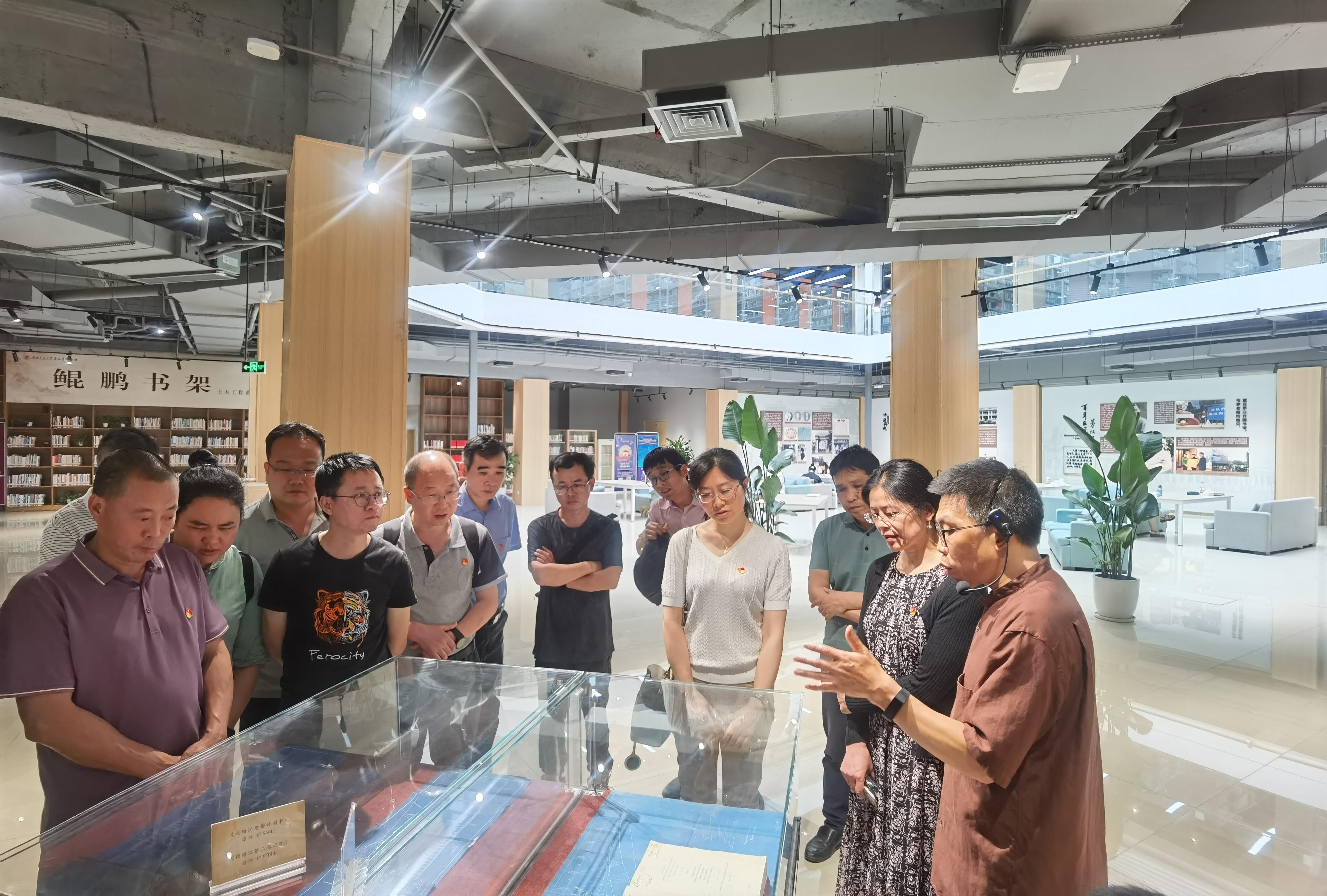 党委书记徐革带队,教工公共数学教学与研究部党支部和机关党支部联合开展《茅以升:百年巨匠·光影百年》主题展参观学习。活动于2023年6月1日下午在九里校区茅以升图书馆举行。