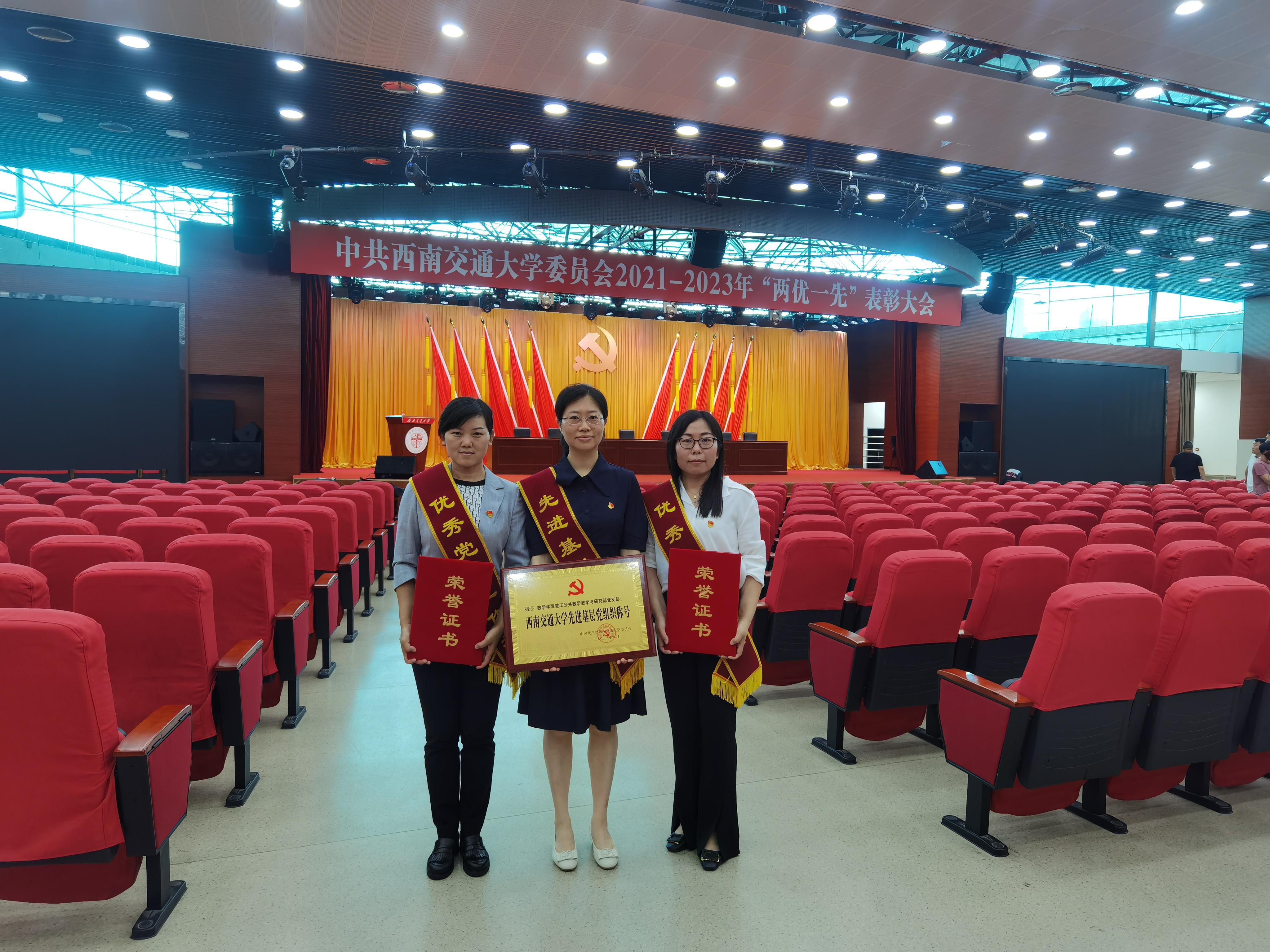 在学校举行的2021-2023年“两优一先”表彰大会上,教工公共数学教学与研究部党支部获得“西南交通大学先进基层党组织”,冯颖、乔高秀获得“西南交通大学优秀共产党员”,徐海晶获得“西南交通大学优秀党务工作者”。