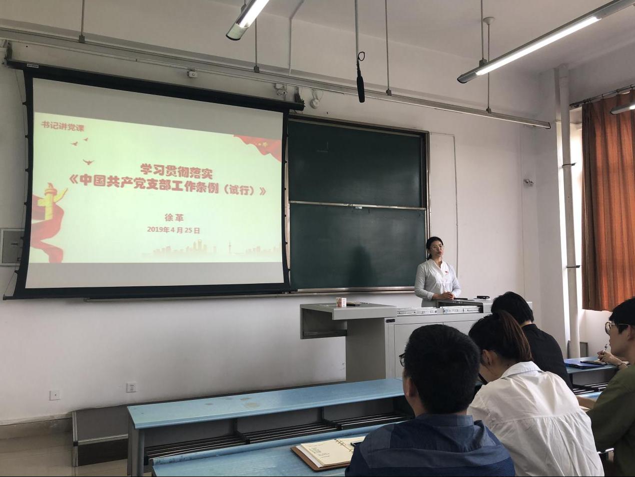 党委徐革书记为学生党支部书记带来了一堂学习《中国共产党支部工作条例(试行)》的党课。