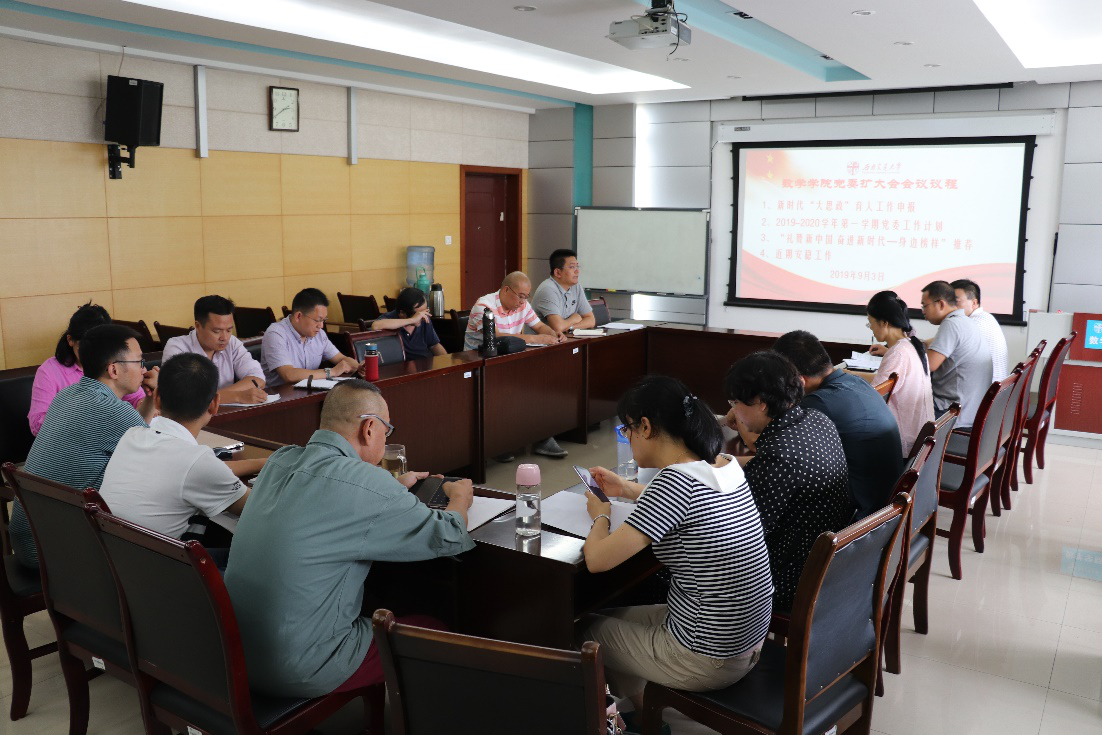 2019年9月3日下午,澳门六合彩开奖结果 2019年第五次党委中心组(扩大)学习会议在犀浦校区X2511会议室召开。会议由党委书记徐革主持,澳门六合彩开奖结果 党政领导班子成员、党委委员、纪委委员、系主任和教工党支部书记等参加,认真学习贯彻习近平总书记在“不忘初心,牢记使命”主题教育工作会议上的重要讲话精神。