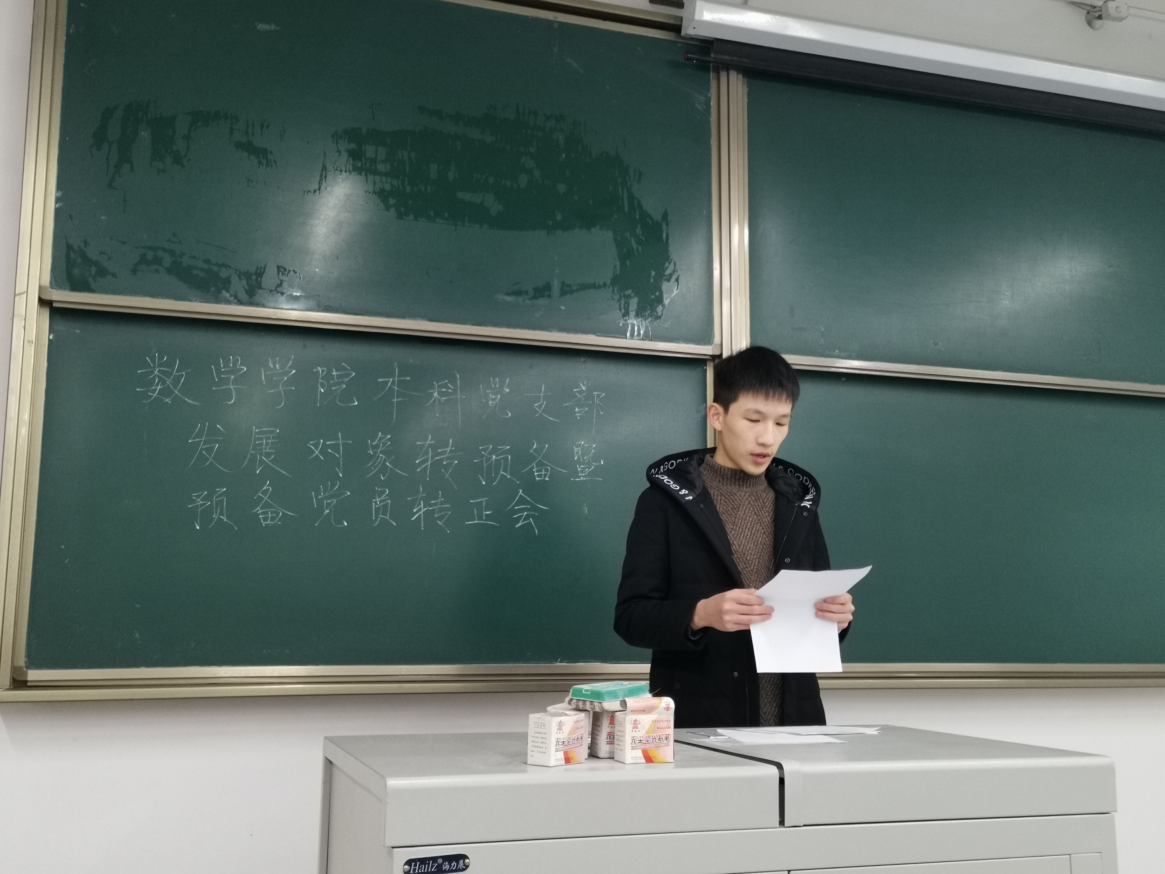 发展对象们宣读入党志愿书,并由正式党员们投票,推选同学们转为预备党员。