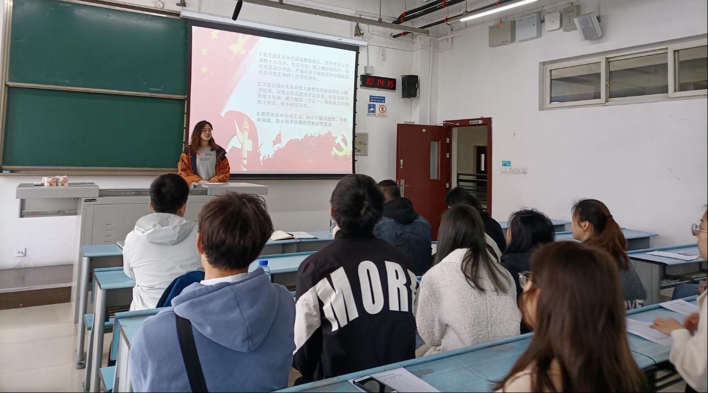 会议的第二部分,个人自评、党员互评。支部党员依次开展批评与自我批评,付凯同学首先说道,自己能够积极了解时政,但在党的理论知识方面学习还不够用心,随后冉虹同学也评议道,付凯同学在生活中很热心,但政治理论修养还不足。之后,大家也都查找了自己在政治、思想、学习、工作、能力、作风等方面的问题和不足,例如:唐修新同学认为自己学习上不够用心,表示在后面的生活中会积极改正,更加努力;冯婷婷同学对待学业认真刻苦,但对党的基础知识学习还不够等等。在严肃认真和谐活泼的氛围中,党员们教育了自我,提升了自我。