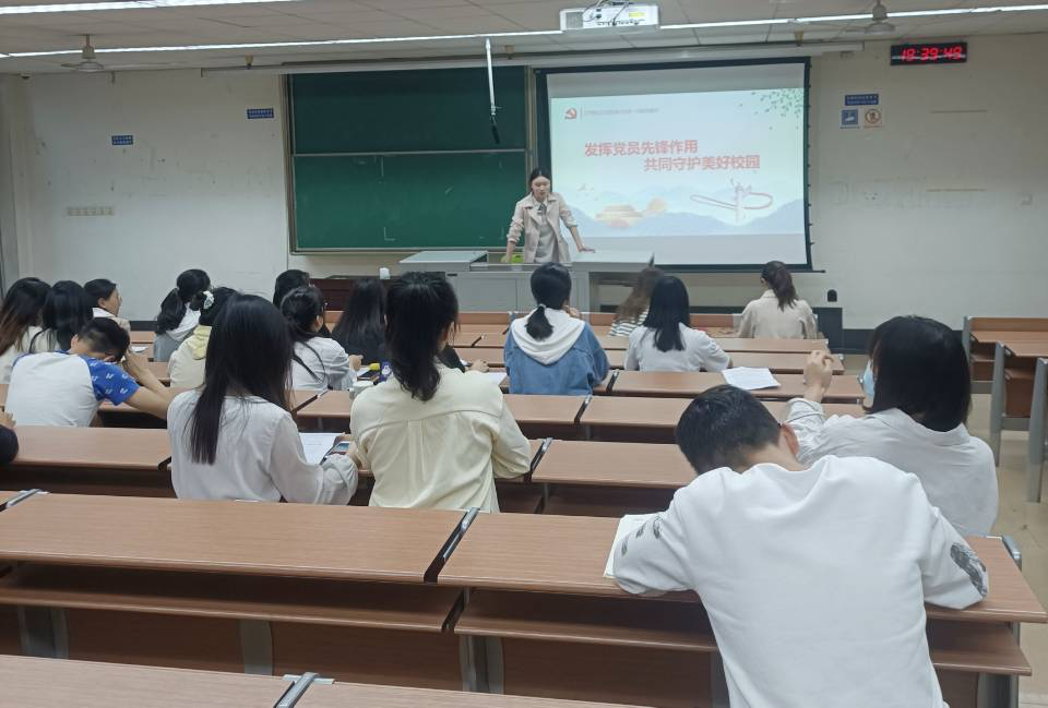 最后,党支部书记王乐同志对本次活动进行总结发言,她强调,我们要积极倡导周围同学自觉配合学校做好防控工作,不给学校添乱;以身作则,带动身边同学学习的积极性和主动性;做好同学们的心理疏导工作,帮助他们消除恐慌,树立信心,科学战疫。