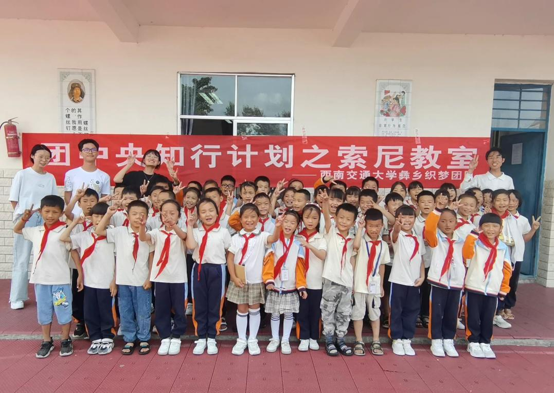 由何未同学组织带领的“彝乡织梦”团队去到了四川省凉山州西昌市兴胜中心小学开展为期六天的支教活动。在这六天里,他们不仅精心准备每一节课的内容,课后认真批改作业,细心地接送小朋友放学,承担了大家长的角色,并通过与本地师生的接触,深刻领会当地文化,以彝族毕摩文化中的漆具花纹为灵感源泉设计文创产品索尼锁。