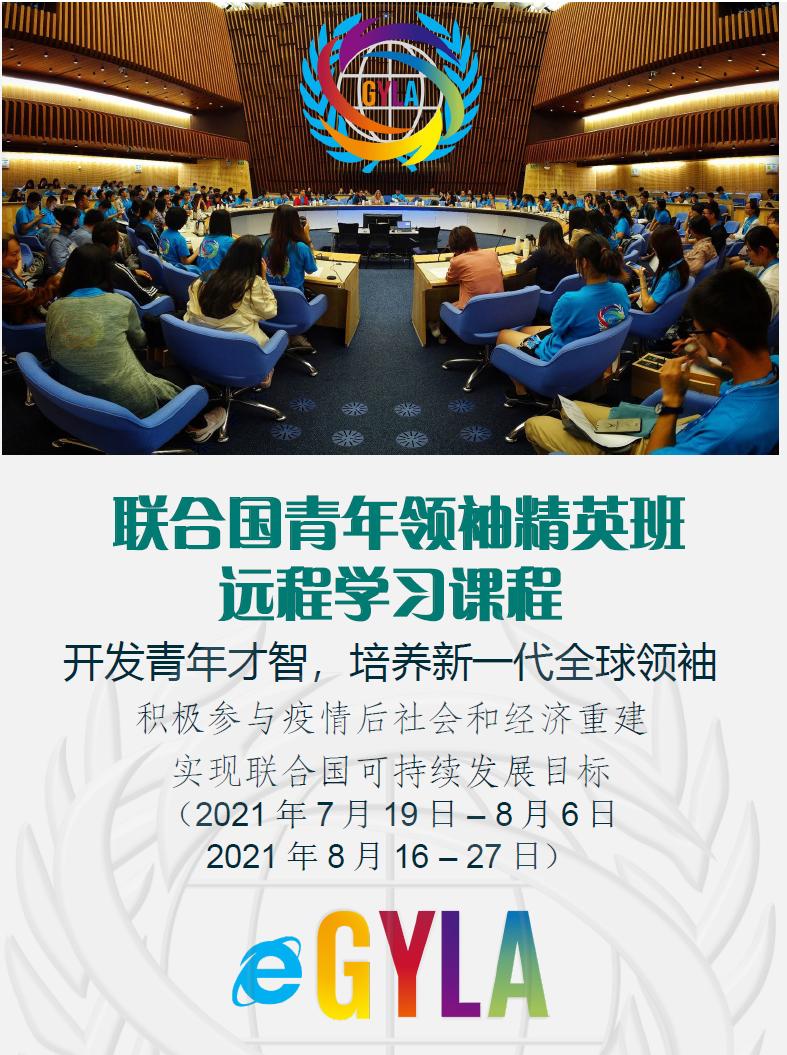 联合国青年领袖精英班(GYLA)是联合国一个专门致力于培养未来全球青年领袖、国际组织人才和跨文化专业人才的教育平台。GYLA 通过开发一系列跨学科和前沿学科的学习项目,以课堂培训、远程教育和青年论坛等多种形式,培育和发展青年的创造力和创新潜力,提高青年的国际公民和社会责任意识,增强其全球领导能力和企业家精神。GYLA 的核心理念是青年所有,青年所治和青年所享。GYLA 激励和赋能青年成为未来全球领袖和参与全球治理和实现联合国可持续发展目标。