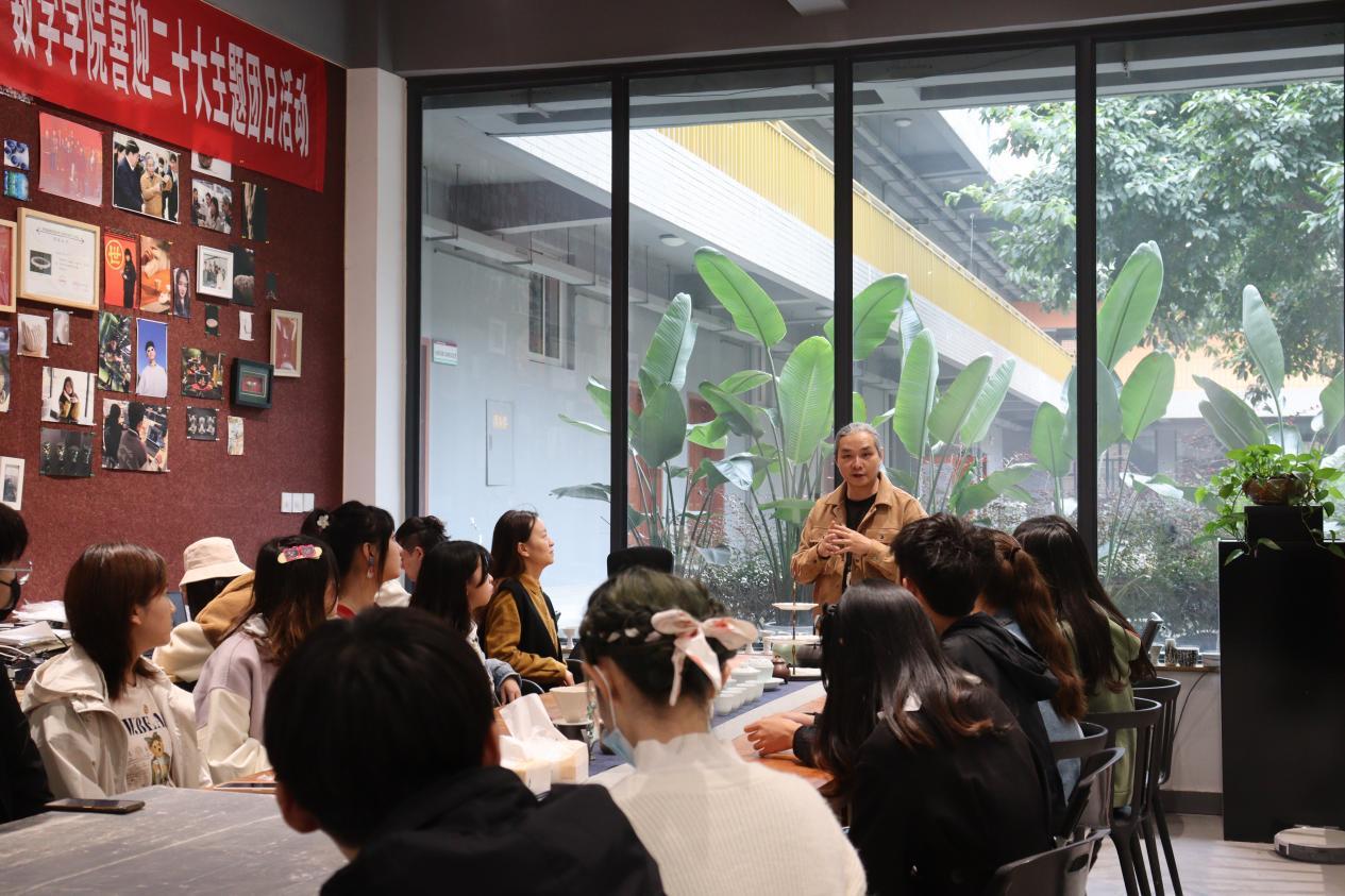 随后,陶瓷艺术与制作工艺实验室主任王永亮老师以风趣幽默地方式从实验室基本情况、陶瓷艺术的发展、陶瓷制作的工艺流程等方面向大家进行了耐心地讲解,特别展示了实验室打造的熊猫飘逸杯、变脸盖碗以及我校125周年文创作品的设计理念及创作来源。讲解完毕后,王老师为大家提供了关于陶绘的工具材料,在讲解完绘画流程和操作的注意事项之后。师生们开启了一次围绕“爱国、爱党、爱校”为主题的陶画创作。