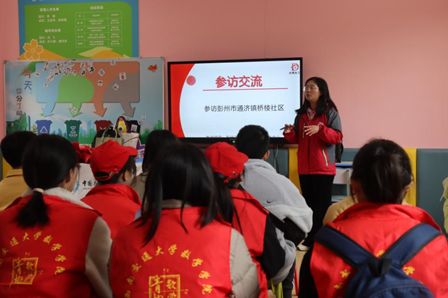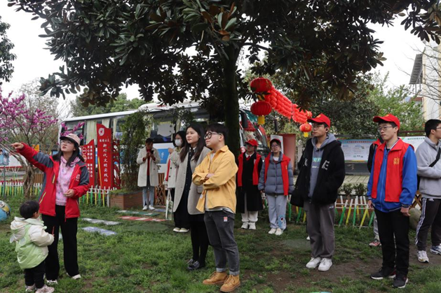上午9时,活动成员在犀浦校区北区校车站集合,乘坐校车前往彭州市通济镇。上午10时30分到达桥楼社区“儿童之家”志愿服务基地,基地负责人向飞老师带领大家一同参观基地,细致地向成员们介绍了儿童友好花园、红军主题纪念馆、文化长廊、党员之家等设施,在红军主题纪念馆中展示了革命先烈的奋斗历程和红军长征的生活用具,如碾子、草鞋、背篼等物件。成员们深刻感受革命先烈不怕牺牲、艰苦奋斗的精神内涵。随后,向飞老师为大家介绍了桥楼社区的发展历程以及对当地建设的积极影响。