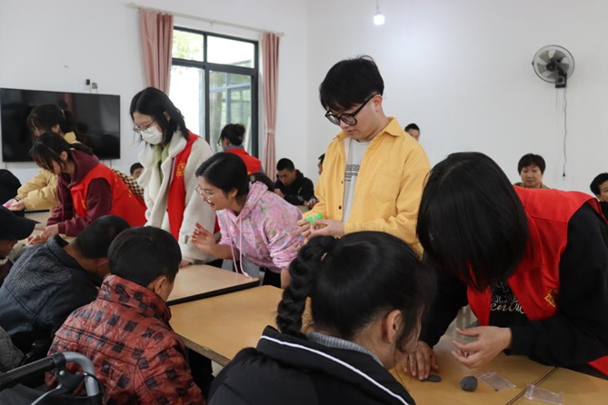 随后,成员们一起前往四川省彭州和谐新家园福利院,该福利院的居民为16岁到60岁精神、智力或身体残疾的人,他们有一个共同的名字——“天窗人”,寓意着上帝为你关了一扇门,必然会为你打开一扇窗。作为四川省首家非盈利性质的孤残免费福利院,这里的志愿者们不仅照顾“天窗人”的生活起居,同时也搭建平台,帮助他们去发现自己的天赋,找到自己的价值。成员们的到来受到了居民们质朴且热烈的欢迎,他们通过音乐与舞蹈表达自己的热情。欢迎仪式过后,成员们分成两个小队,一队在屋中与“天窗人”一起用粘土制作物件,另一队负责打扫福利院卫生,为福利院居民提供力所能及的陪伴与帮助。