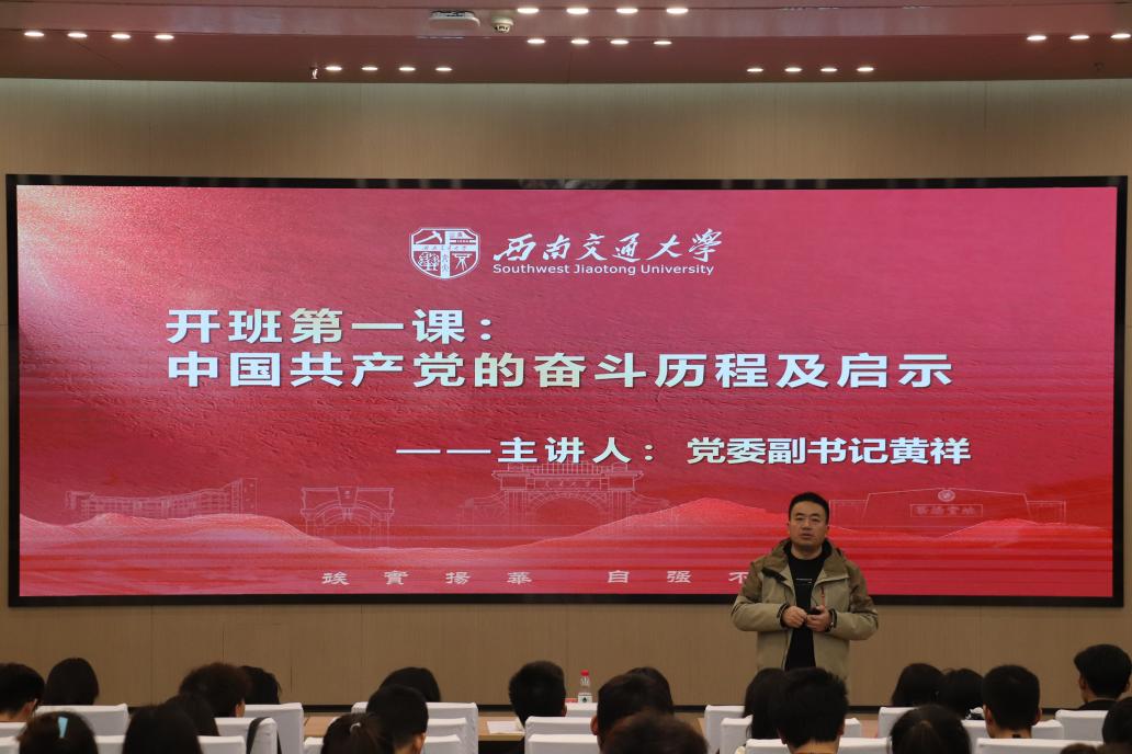 开班仪式结束后,黄祥副书记为全体学生骨干开展了“中国共产党的奋斗历程及启示”主题讲座。他从中国共产党成立的历史背景切入,系统回顾了党在不同历史时期的奋斗历程,生动讲述了党在民族独立、国家富强、人民幸福等阶段所作出的卓越贡献。黄祥书记勉励同学们,必须从党的百年奋斗历程中汲取智慧和力量,把党的成功经验传承好、发扬好,为在新时代更好坚持和发展中国特色社会主义、实现中华民族伟大复兴的中国梦不懈奋斗。
