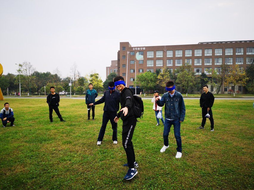 接着在团支书与组织委员的带领下,开始了素质拓展。一圈之内,欢声笑语,蒙眼摸人的游戏即使简单,也赚足了大家的笑脸与笑声。然后由参加迎新晚会的几位同学表演了有趣的小品“当外卖来敲门”,演技十足,内容也令人忍俊不禁。