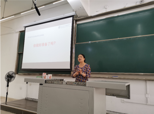 2016级辅导员钟义婷做出总结,钟老师提醒同学们要认真反思与总结本次活动黄处长和张老师为大家分享的就业建议,鼓励大家要立足自身,多方考虑,在大四这个关键的时间点上把握机会、迎接挑战,对自己的人生负责,对自己的未来负责。