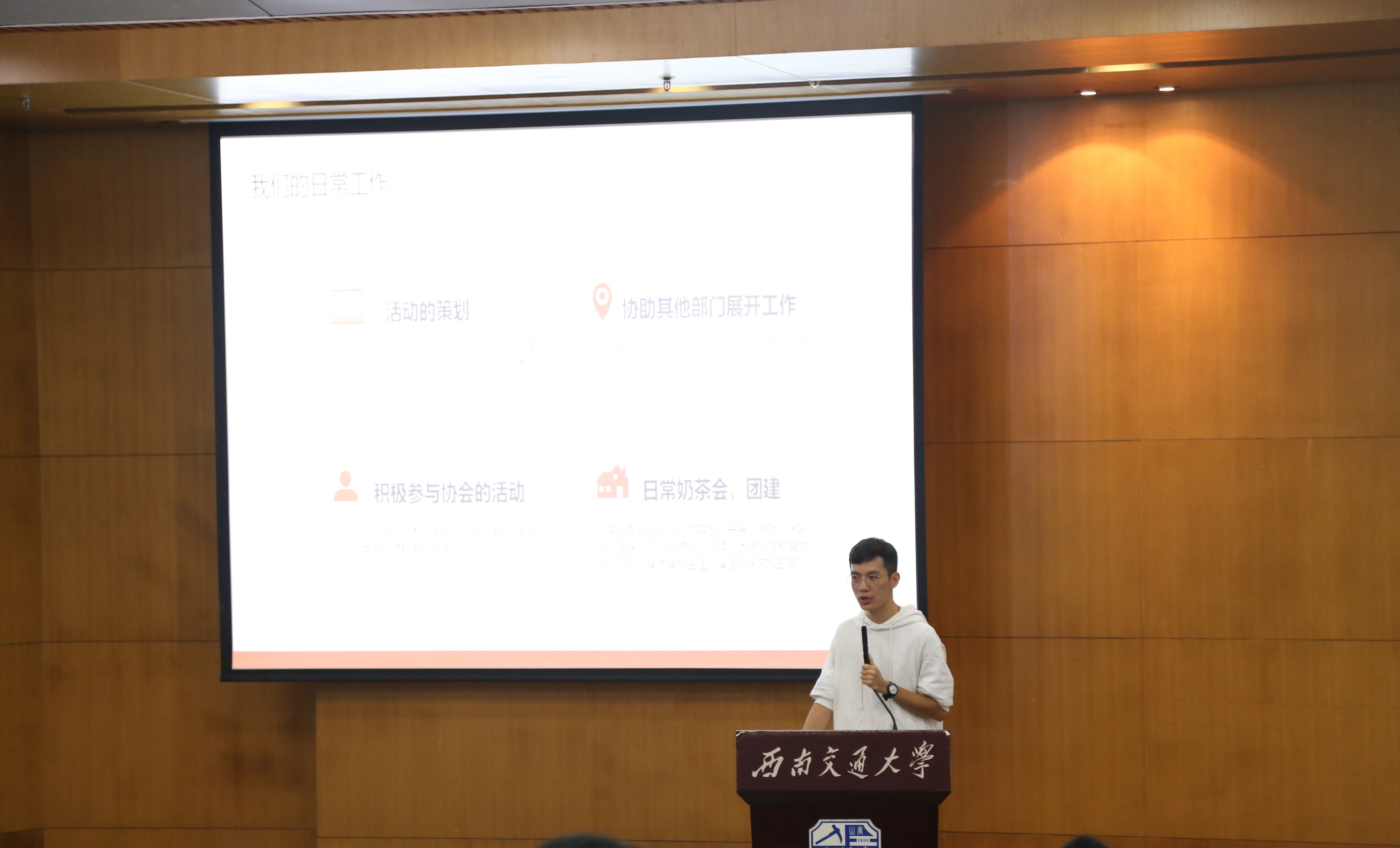 学生会。在学生会主席王政慧的经验分享后,学生会宣讲正式拉开帷幕。他们以游戏通关的视频视角向在座同学介绍各部门,各部门部长分别上台宣讲介绍自己部门,新生们对学生会的部门职能有了进一步的了解。