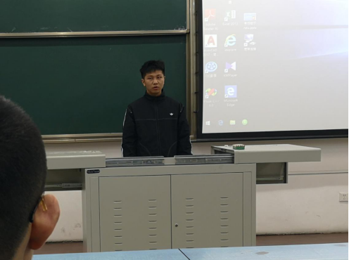 首先介绍了一位转入统计二班16级的新同学石承灿,因为入伍了两年本学期才得以继续学业,同学们对他致以热烈的欢迎。