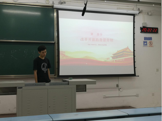 分别为党史、新中国史、改革开放史、社会主义发展史,由组织委员李雨桐、班长蔡学峰以及团支书李宏亮主讲。通过四史的学习,同学们对中国历史有了更深刻的理解。四史的学习,有着十分紧迫而深远的意义,它帮助我们身临其境地体会到我党走过的峥嵘岁月,感受革命奋斗从筚路蓝缕到渐入佳境。