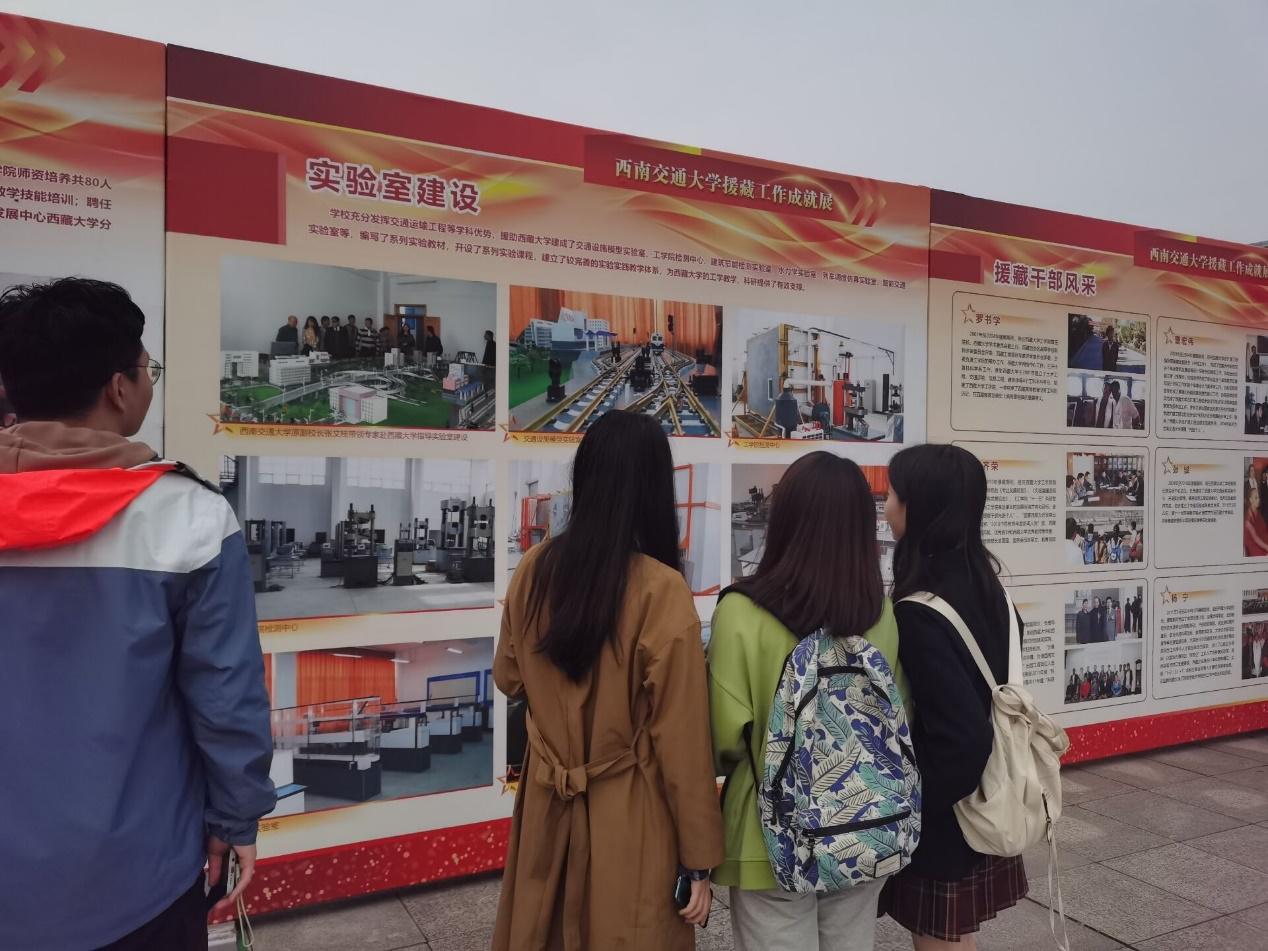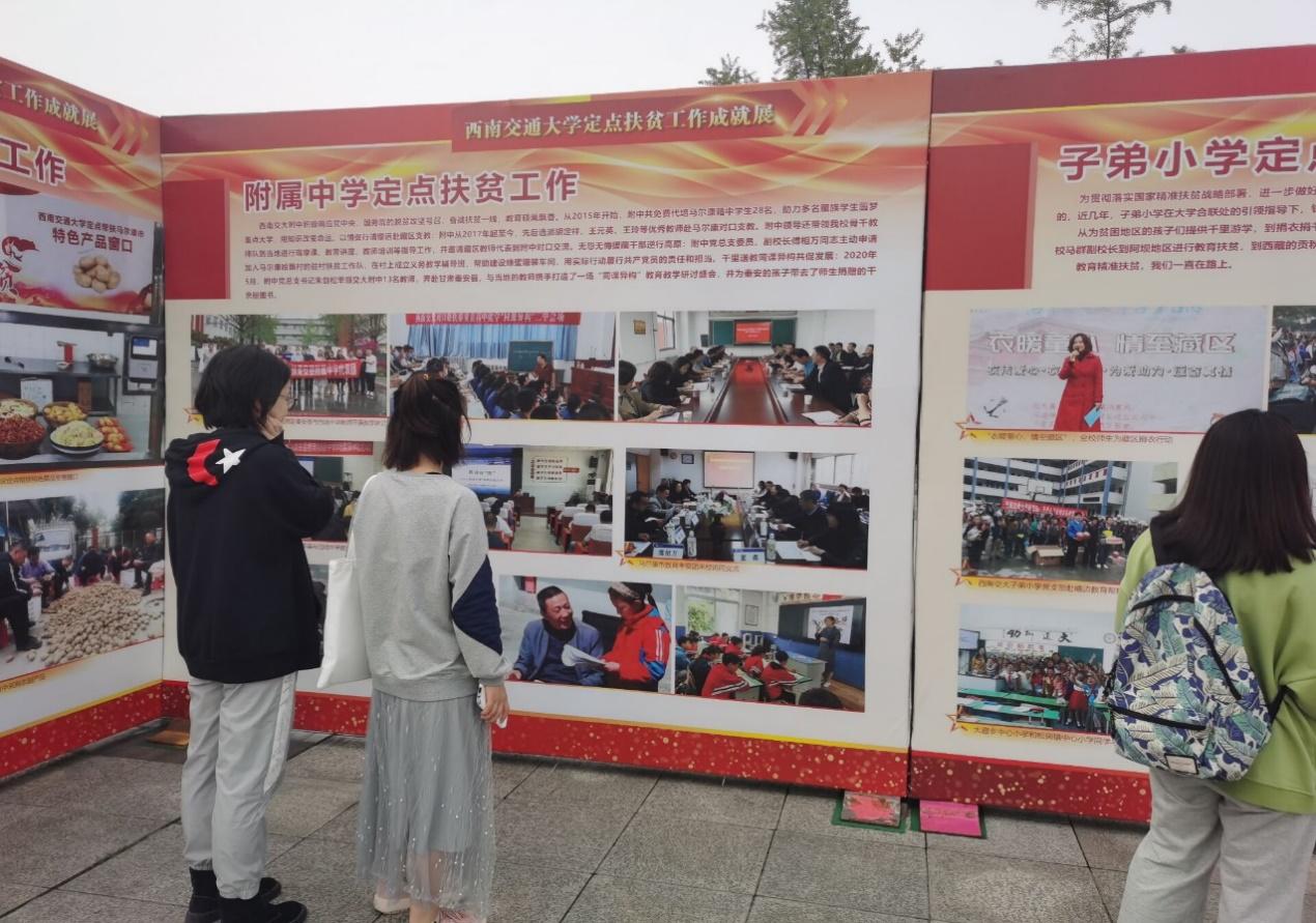 本次参观的工作成就展包括西南交通大学定点扶贫工作成就展和以及南交通大学援疆成就展,分别从领导,民生,产业,建设等方面介绍了西南交通大学扶贫援疆工作内容,从优秀干部,各个组织和工作单位如校工会,交大学生,后勤与基建管理处等所取得的成果进行了展示。