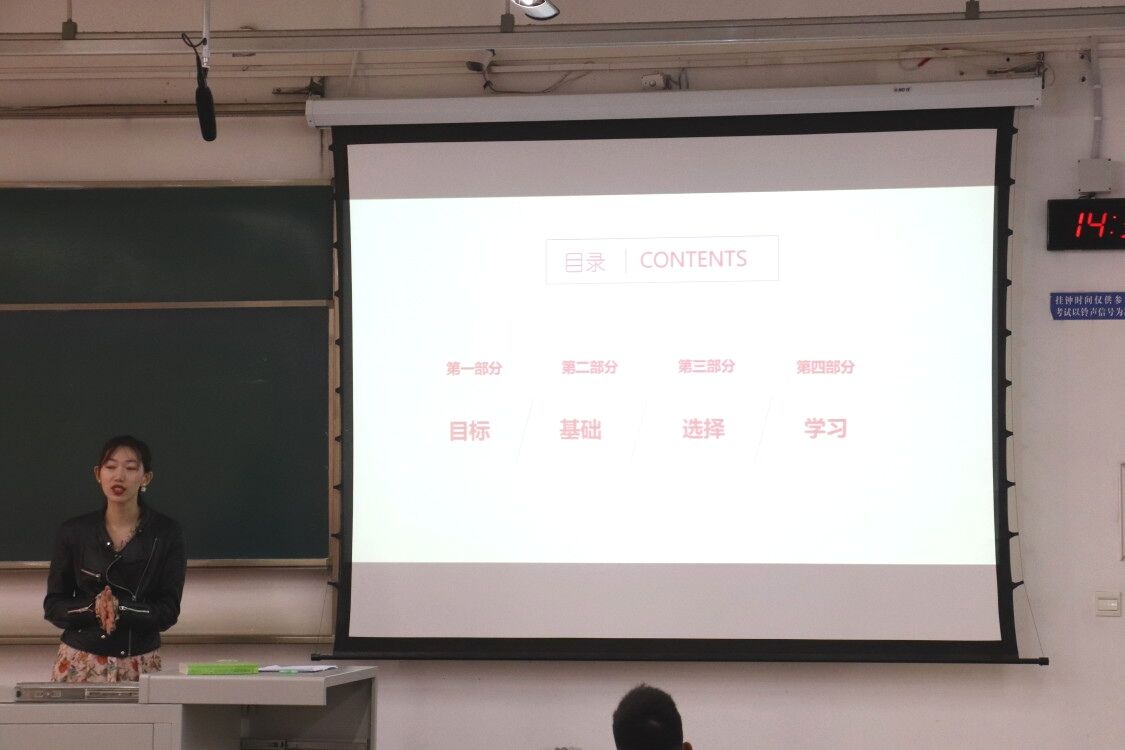 分享会伊始,周芝娜老师就研究生考试的相关问题向在场同学进行提问,并对同学们存在疑惑的问题进行一一解答。随后,周老师根据自身经历向大家阐述了报考研究生的重要性。分享会就目标、基础、选择与学习四方面进行讲解指导。