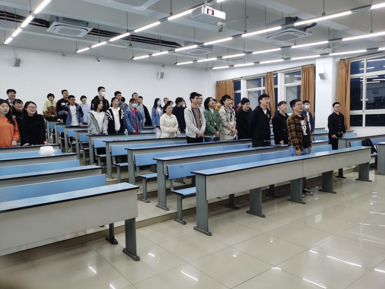 首先,团员全体起立,高唱团歌。接着,邱灵简述了青年大学习的学习情况并强调其重要性,各位共青团员应该学习新思想,争做新青年,认真完成青年大学习。同时,二三课堂的学习,游泳考核以及创新创业学分作为毕业的重要指标应该得到重视。