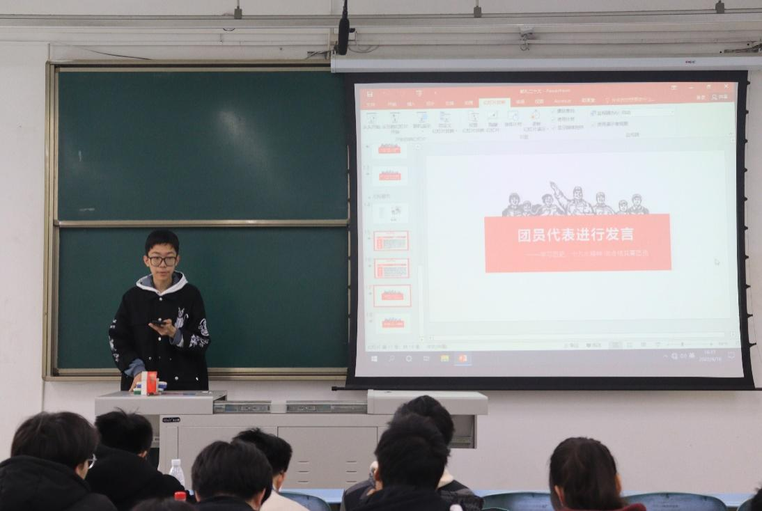 团课第四项议程,团员代表辛家博发表感想。号召大家要心系祖国心系党,以实际行动迎接党的二十大胜利召开。
