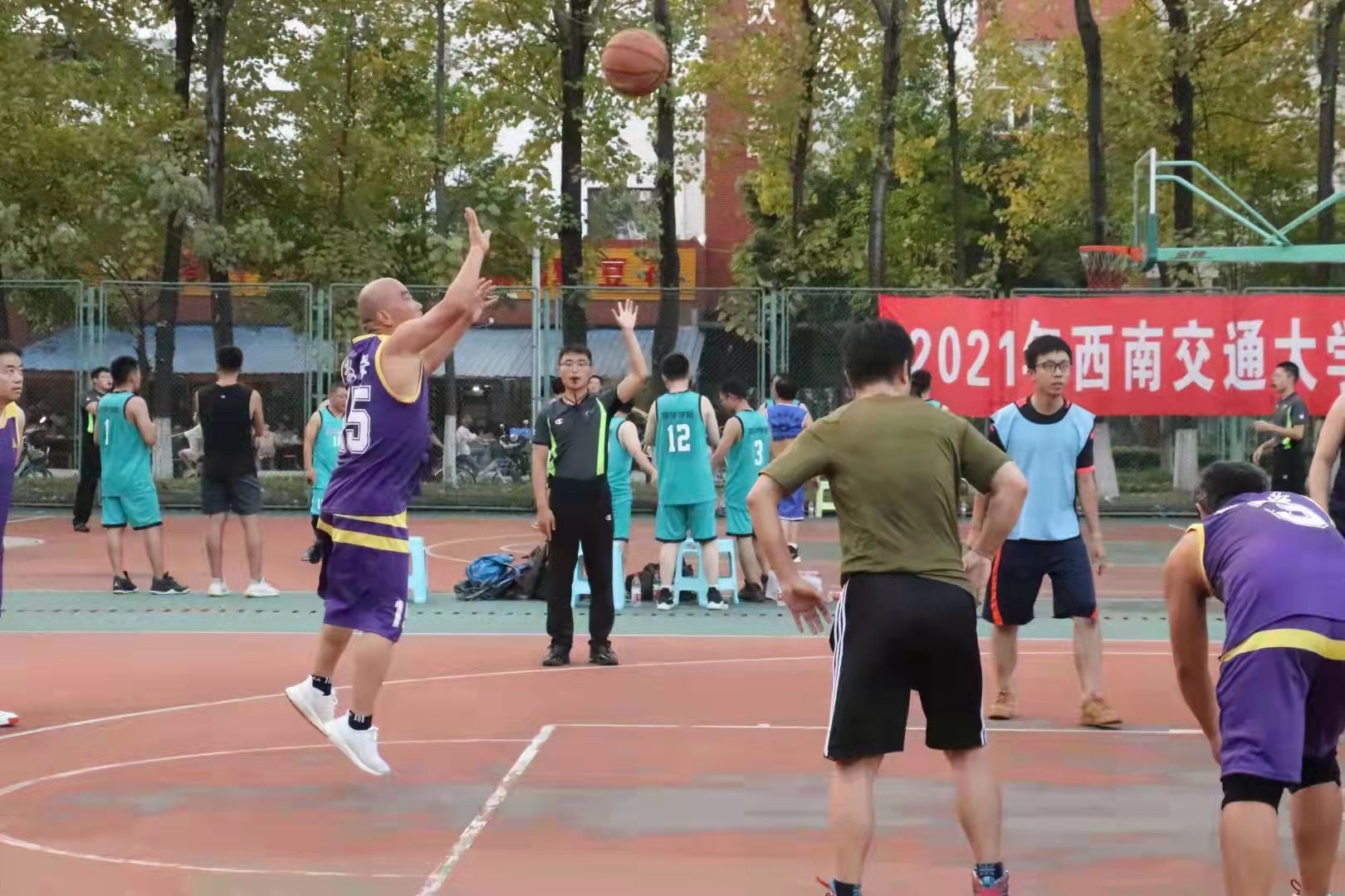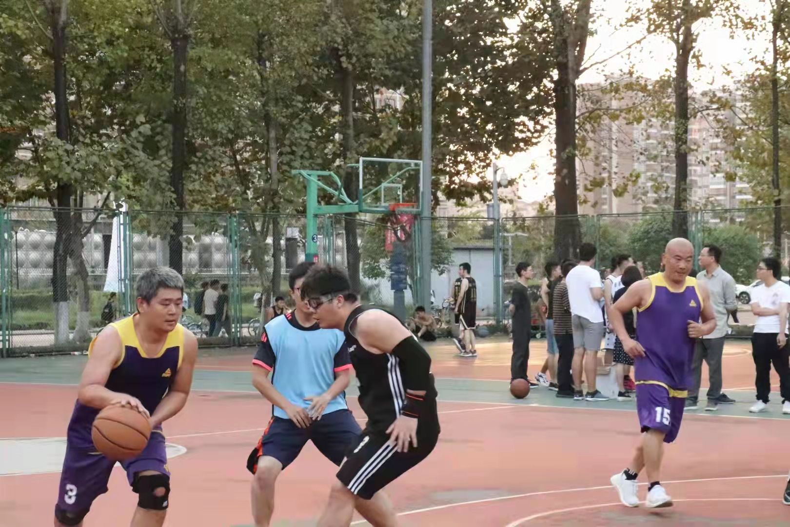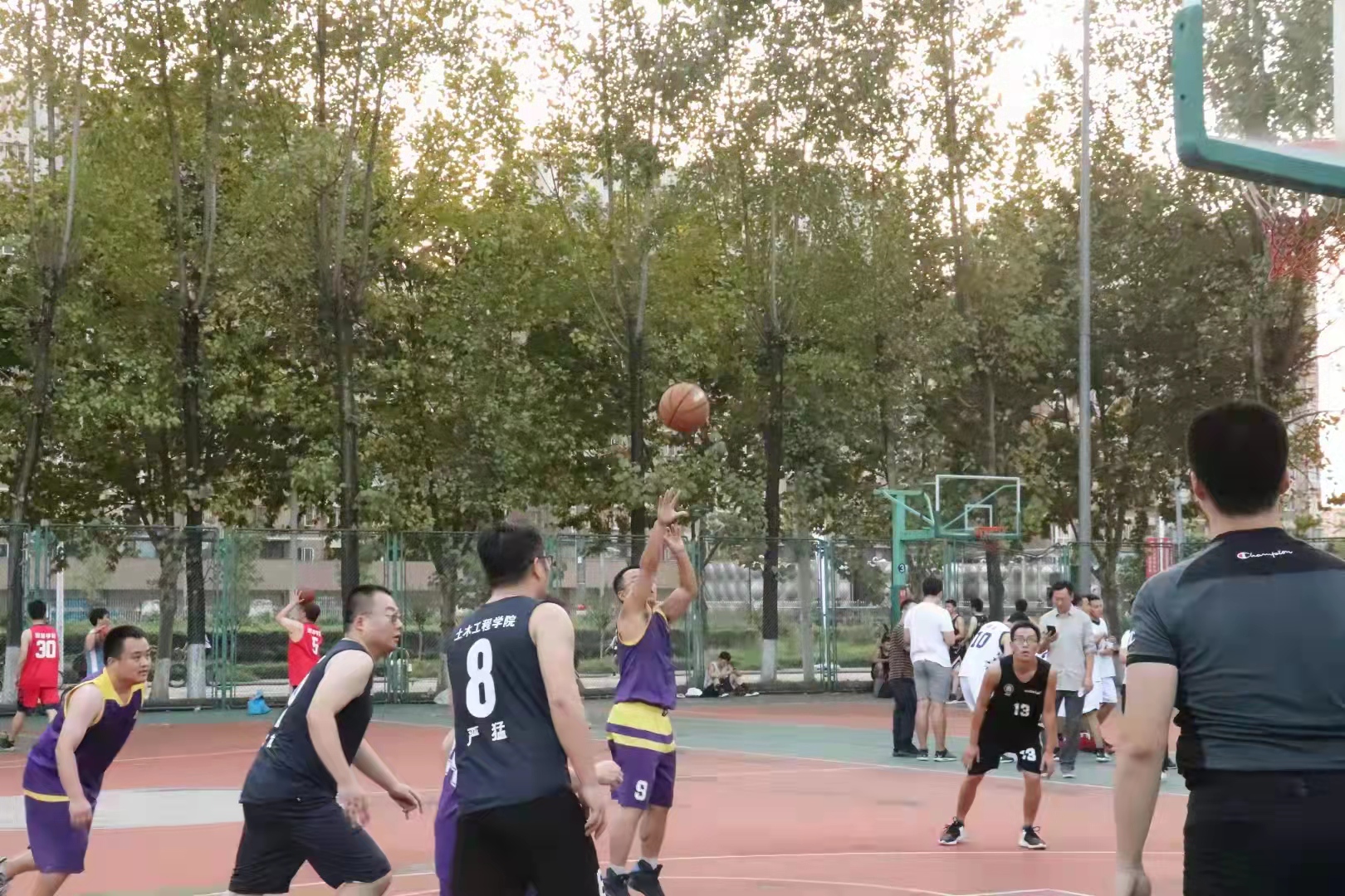 的老师们总共参加了三场篮球赛。