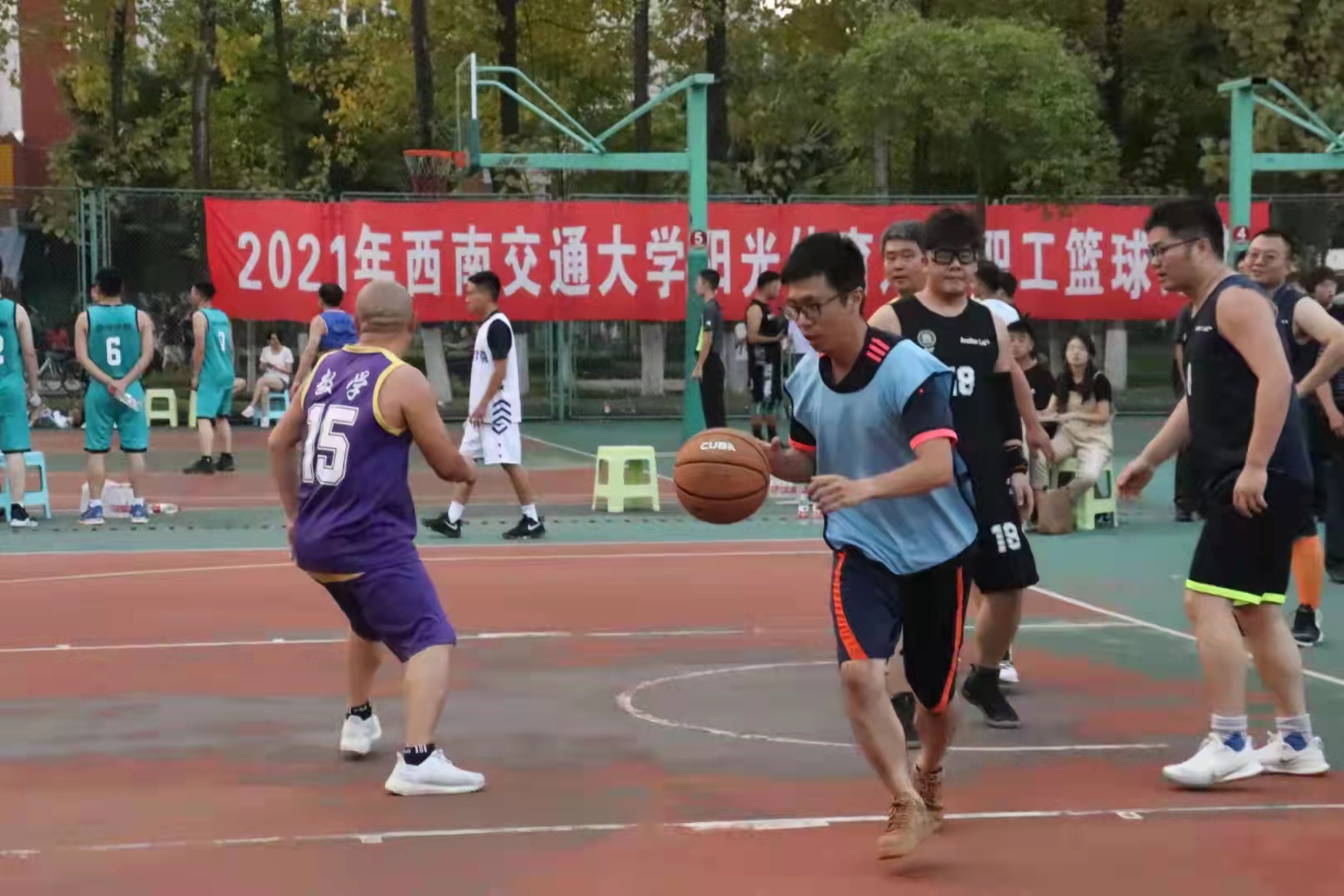 教职工于犀浦校区北区篮球场二号场地展开篮球赛。比赛开始前,我院球员们如火如荼地进行着热身活动,每位球员都饱含热情,比赛的哨声吹响,我院球员积极配合,坚守自己阵地,并把握每一次的运球机会,找准时机发起进攻,场面十分精彩,让在场观战的师生连连叫好。虽然最终我院遗憾的输掉了比赛,但此次比赛增强了我院球员们的团队意识,也为下一次比赛积累了经验。