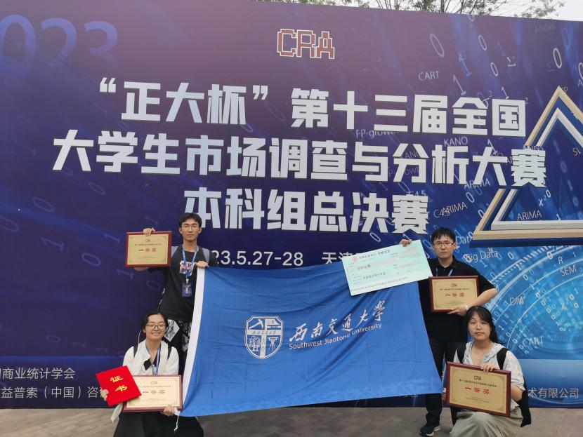 近日,由中国商业统计学会主办的“正大杯第十三届全国大学生市场调查与分析大赛本科组总决赛”在天津财经大学举行。经过激烈角逐,代表我校入围全国总决赛的四支队伍,全部斩获国家级一等奖,取得大满贯优异成绩。此外,西南交通大学荣获“最佳院校组织奖”和“最佳赛区组织奖”。