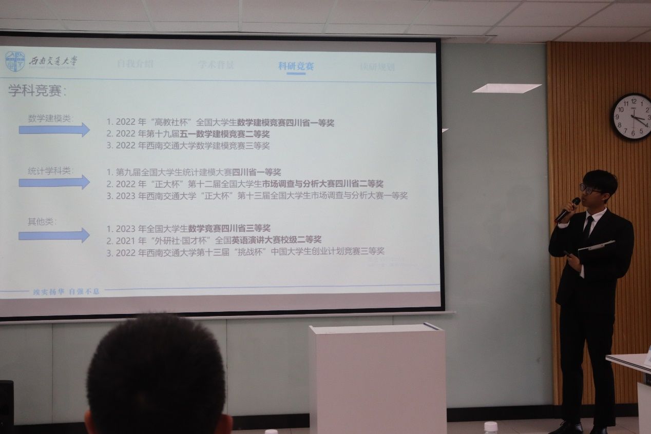 首先,吕薇老师向大家介绍了省级优秀毕业生评选的流程和评审小组成员。随后,汪泽新、韦杰、张诗语、李步云、刘向阳、贾起超、黄崇博、罗梦甜、韩雨航、朱秀玲、李晓冰、张翔、张晓洋、刘柏轩14名候选人依次进行答辩。他们分别从学习成绩、科研竞赛、荣誉获奖、学生工作、社会实践以及未来展望等方面,向评委老师们介绍自己在大学期间取得的收获与成长。候选人们以自己优秀的专业成绩、科研竞赛成果以及丰富的社会实践经历,诠释了“竢实扬华,自强不息”的交大精神。
