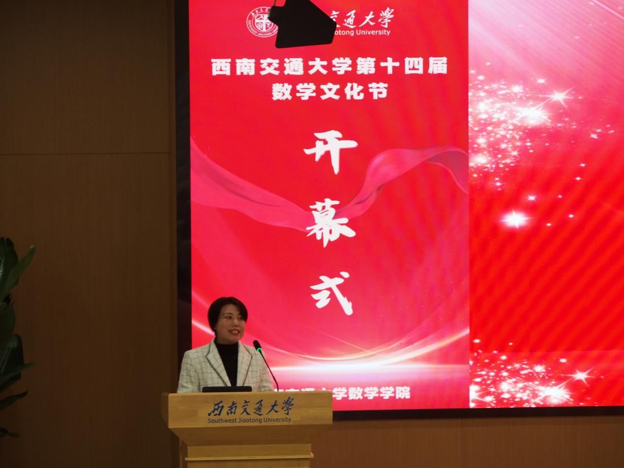 党委副书记赵文丽代表兄弟院校致辞,向西南交通大学第十四届数学文化节成功举办表示热烈的祝贺。她表示,西南交通大学数学文化节活动组织精彩、形式丰富、意义深刻,为兄弟院校开展相关工作提供了宝贵的经验和蓝本;也希望借此机会与各院校充分交流、加强合作、共谋发展。
