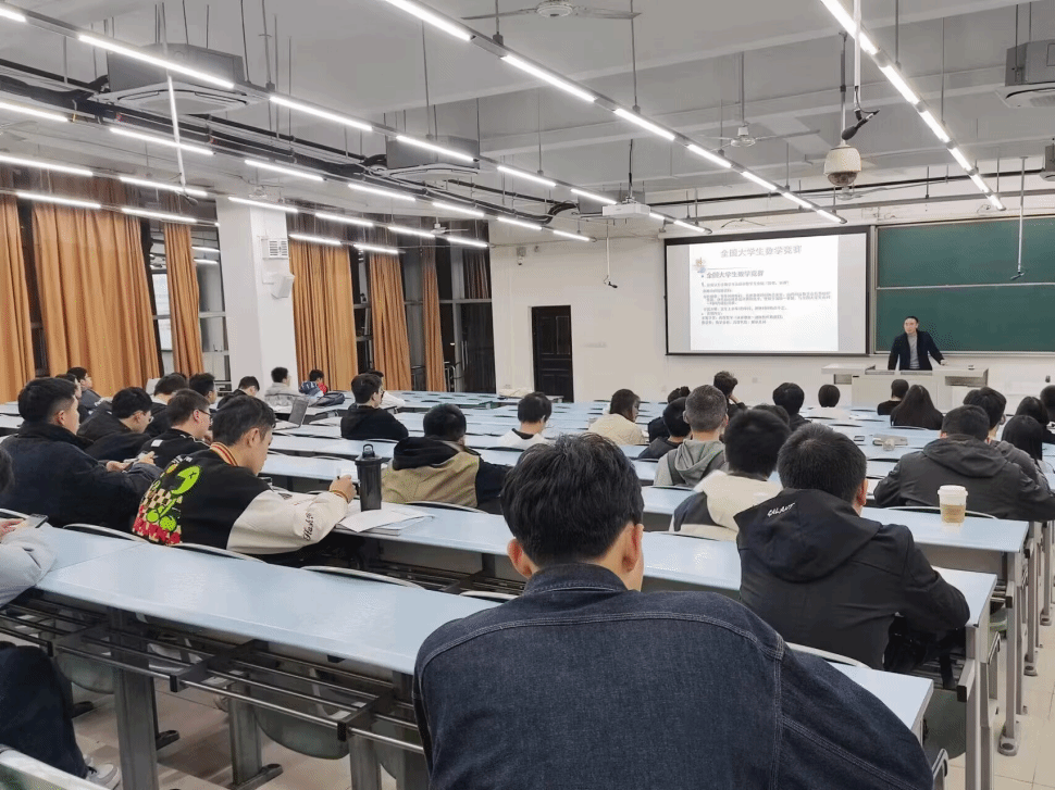 数学竞赛资深教练秦应兵副教授在X2218为到场同学细致地介绍了全国大学生数学竞赛。秦老师从赛事介绍和考察内容讲起,不仅介绍了历年来我校在全国大学生数学竞赛中取得的优异成绩和本项赛事的推免加分政策,还给出了具体的备考建议。同时针对近几年竞赛真题,秦老师进行逐题分析并对常考考点进行了归纳总结,到场同学纷纷表示受益匪浅。
