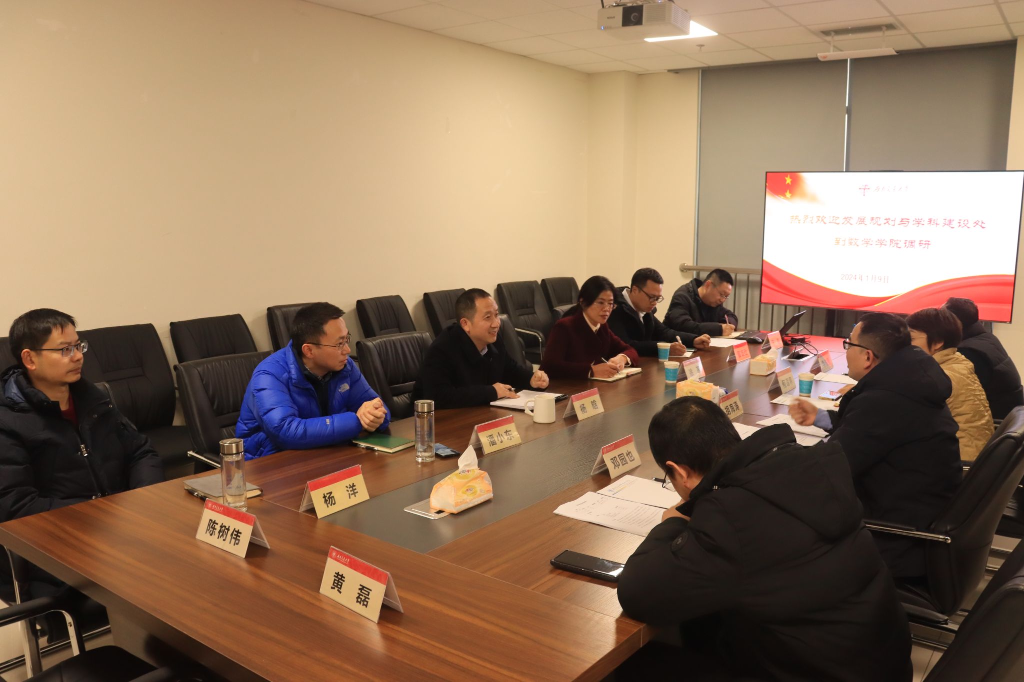 1月9日下午4时,发展规划与学科建设处处长胡海涛、副处长何诣寒、政策研究与改革办公室副主任任乐、学科建设办公室副主任黄强一行到澳门六合彩开奖结果