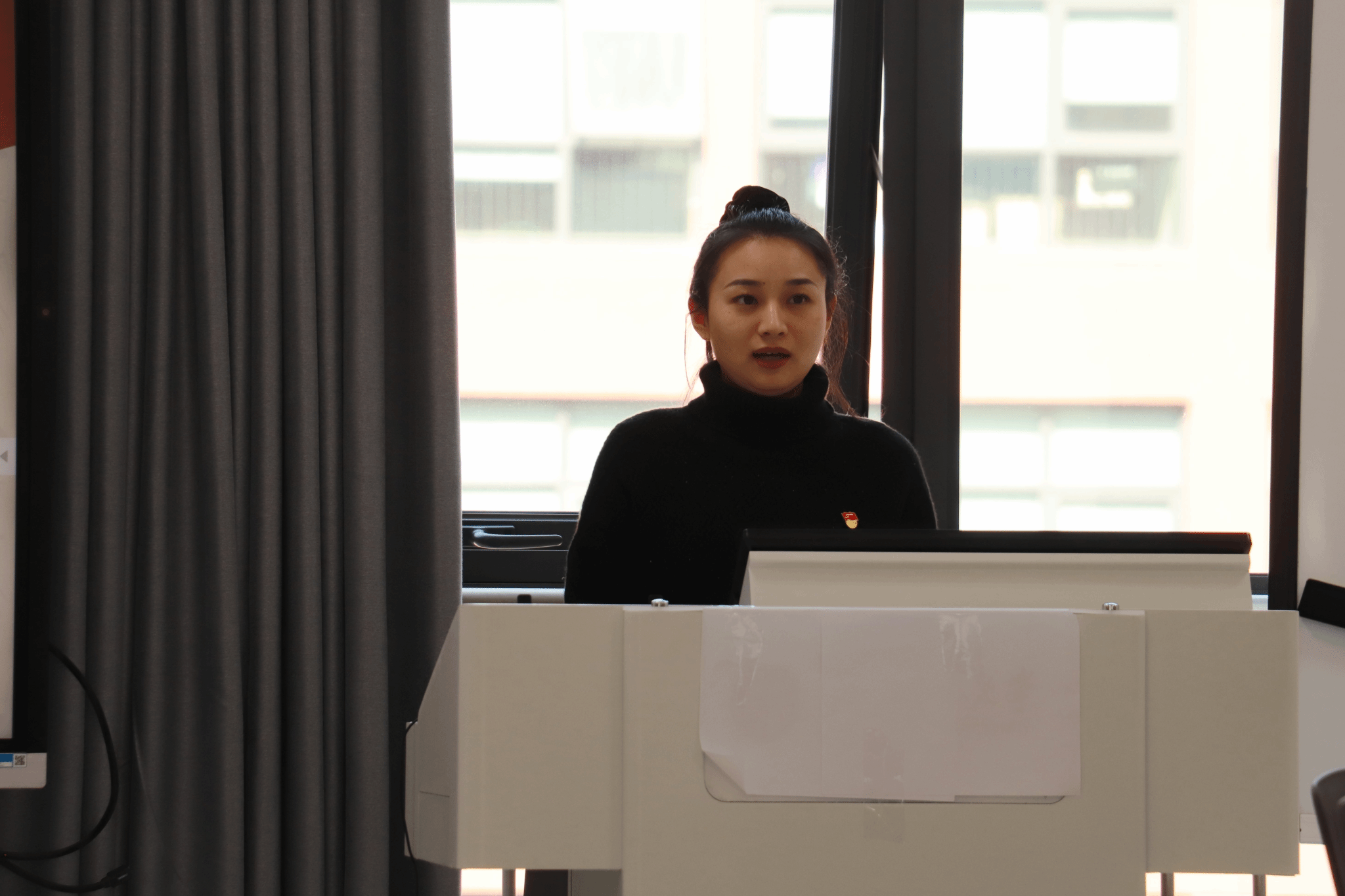 本科生第一党支部书记鲍济洲、本科生第二党支部书记胡丽君做表态发言,并确立未来工作目标。