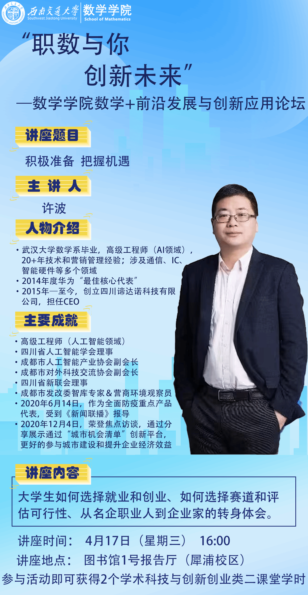 “职数与你 创新未来”——澳门六合彩开奖结果 数学+前沿发展与创新应用论坛(第一期)