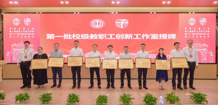 2024年5月31日上午,西南交通大学第八届教职工代表大会暨第二十一届工会会员代表大会第三次会议闭幕会在犀浦校区举行,学校党委书记余敏明、校长闫学东为第一批“西南交通大学教职工创新工作室”授牌。