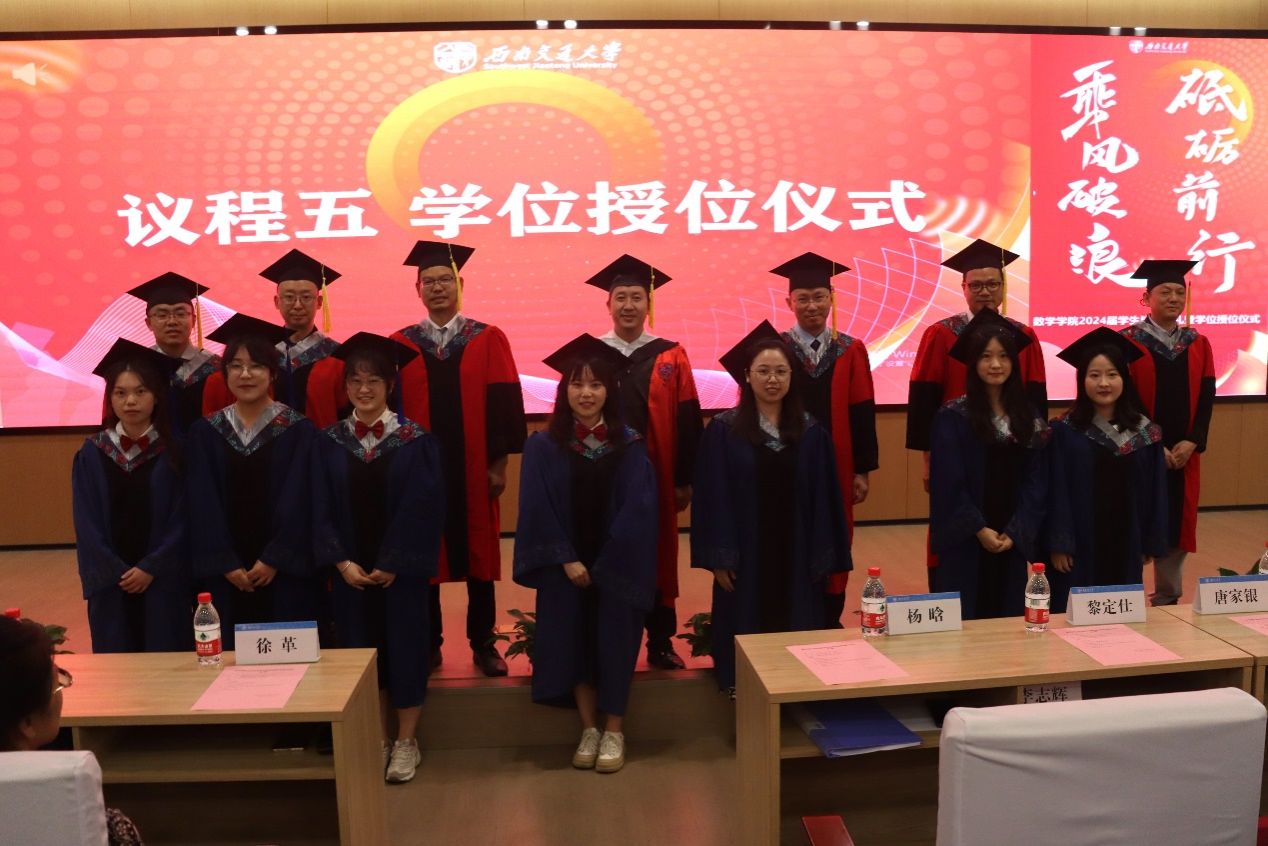 学术分委会导师为毕业生逐个授学位礼并合影留念。