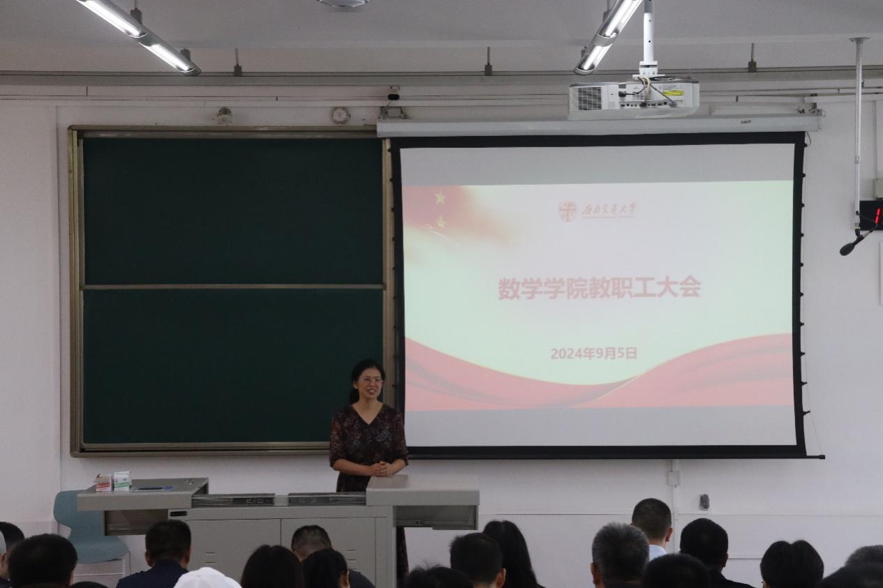 建设大而不强,对外合作交流的情况不甚理想等,仍需要加强高层次人才的培养引进。杨晗院长呼吁教师全身心投入教育教学工作,将教育教学与科研工作并重,锚定国家战略与科研需要,鼓励教师参与教材编写,提高科研项目供给的质量,改革绩效分配,在教学与科研领域做好数学赋能。