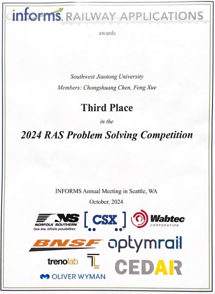 薛锋副教授组成的团队“Railmen”,荣获问题求解竞赛(Problem Solving Competition, PSC)全球第三名。
