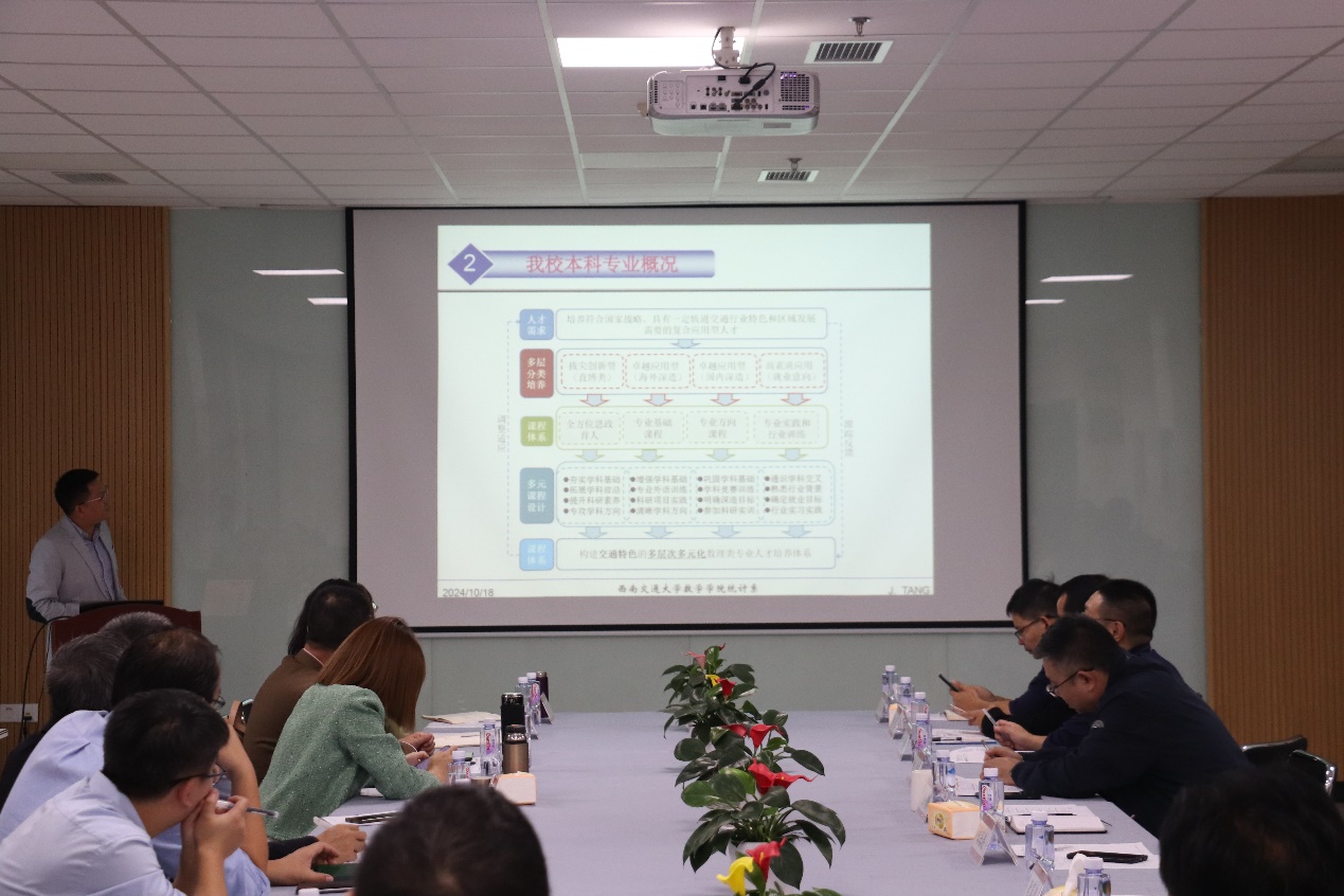 统计系主任唐家银教授发表讲话。唐教授以西南交通大学建成交通特色鲜明的高校平研究型大学的目标为指引,指出应依托轨道交通,多学科融合,创建交通统计特色应用统计专业硕士点建设,从而达到培养适应社会需求的人才输出目标。