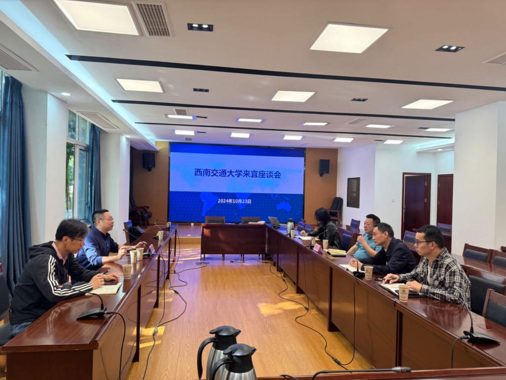 一行前往西南交通大学宜宾研究院(以下简称宜宾研究院)调研交流。宜宾研究院王鹰院长和罗霄副院长等参加了调研座谈会。罗霄副院长从研究院历史、师资队伍、研究生培养、科学研究、校地合作等方面介绍了宜宾研究院的发展情况。接着,王璐副院长介绍了我院近几年的发展整体情况,特别介绍了澳门六合彩开奖结果