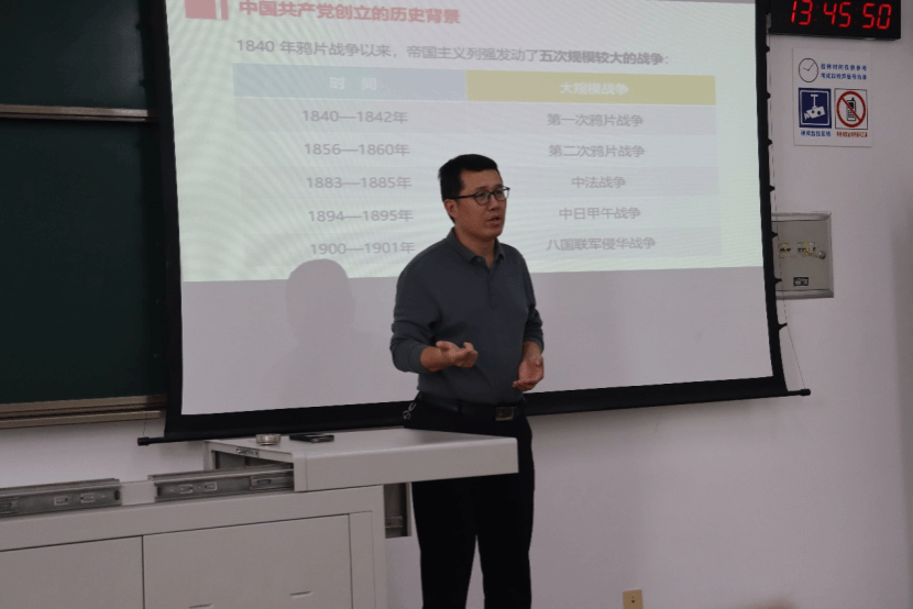副教授杨伟宾。首先,杨伟宾老师剖析了洋务运动、太平天国运动、戊戌变法、辛亥革命等民族救亡图存运动失败的原因,进而指出中国共产党诞生的历史必然性。