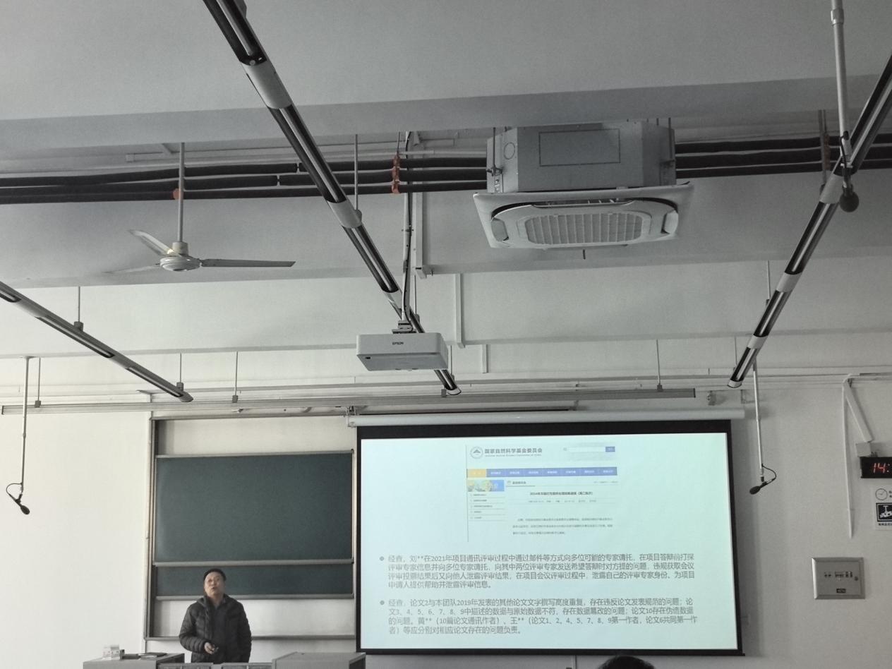 年度科研取得的成绩,鼓励广大教师再接再厉,并进行科研诚信警示教育。通过案例,使大家深刻认识学术不端的危害性,明确学术不端标尺,进一步端正科研学术观。