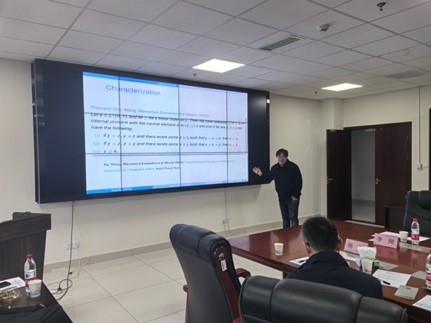 会议首日的讲座聚焦于逻辑推理与代数的深层次融合,探讨了非经典逻辑在现代信息处理中的应用。贺鹏飞教授(陕西师范大学)在开场讲座《一元Łukasiewicz谓词逻辑对应代数上的内态研究》中,探讨了如何将非经典逻辑与概率理论相结合,提出了基于Łukasiewicz逻辑的概率模型,并进一步分析了MV代数上的状态操作。贺教授的研究为非经典逻辑在信息科学中的应用提供了新的理论支持。苏勇教授(苏州科技大学)在《Idempotent Uninorms》讲座中,深入分析了冯诺依曼代数结构在模糊逻辑中的应用,介绍了不同类型的Idempotent Uninorms,并探讨了其在信息聚合函数中的理论进展。这一研究为复杂系统的推理与决策提供了新的数学工具。李刚教授(齐鲁工业大学)则在《聚合算子间的弱支配》讲座中,讨论了聚合算子间的支配关系,特别是在模糊逻辑中的应用。李教授提出的弱支配概念及其与相关不等式的联系,为模糊系统理论的发展开辟了新思路。