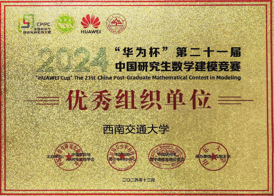 2024年“华为杯”第二十一届中国研究生数学建模竞赛于近期圆满落幕,西南交通大学再创佳绩,斩获一等奖2项,二等奖28项,三等奖35项。我校再次获得“优秀组织单位”称号。其中,一等奖的获奖队伍中,“草原三恶霸”队在C题8947支队伍中取得了第4名的优异成绩,受组委会的邀请在颁奖前进行了交流分享。
