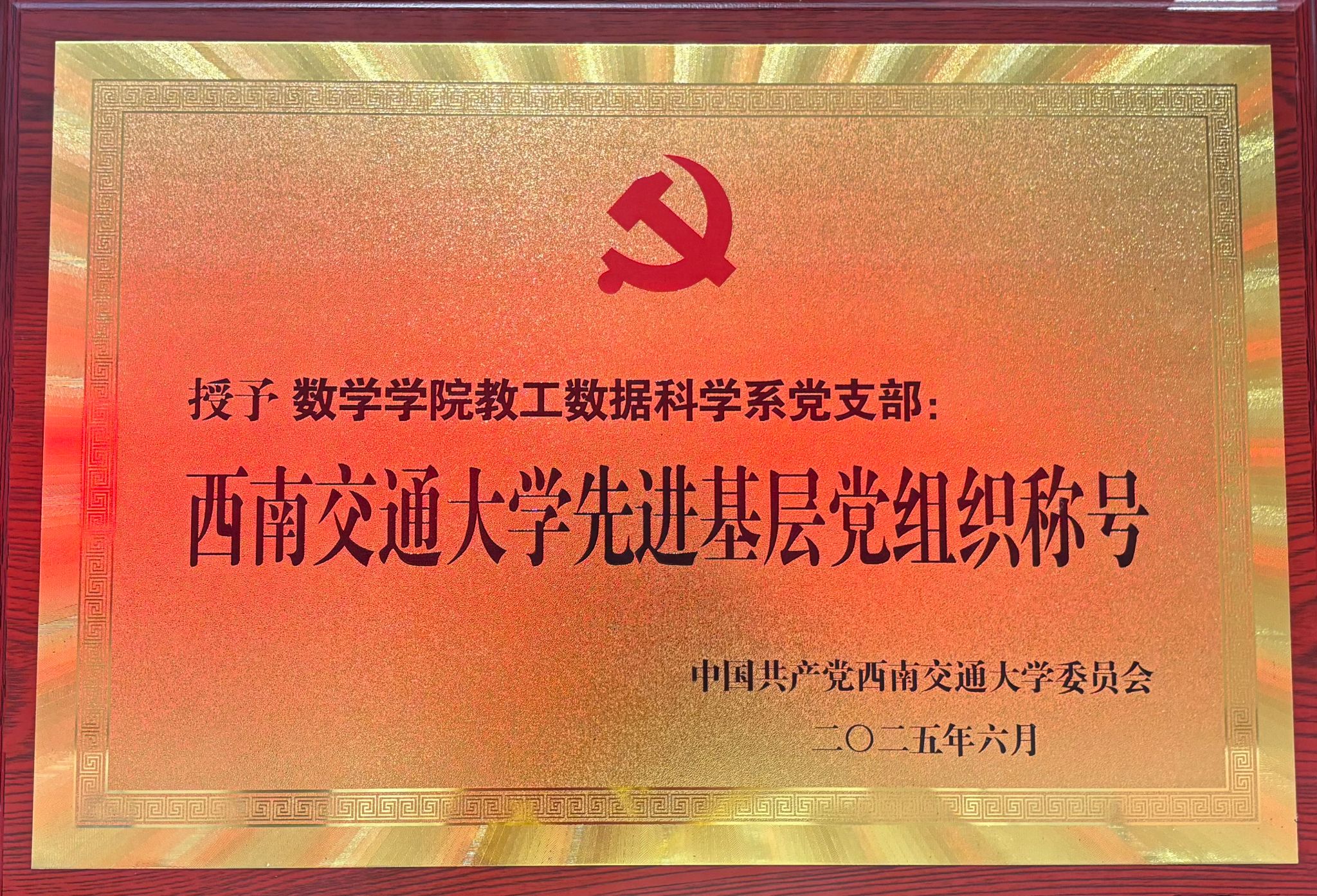 教工数据科学系党支部被授予“西南交通大学先进党支部”荣誉称号,该支部以扎实的党建工作引领教学科研全面发展,成效显著。