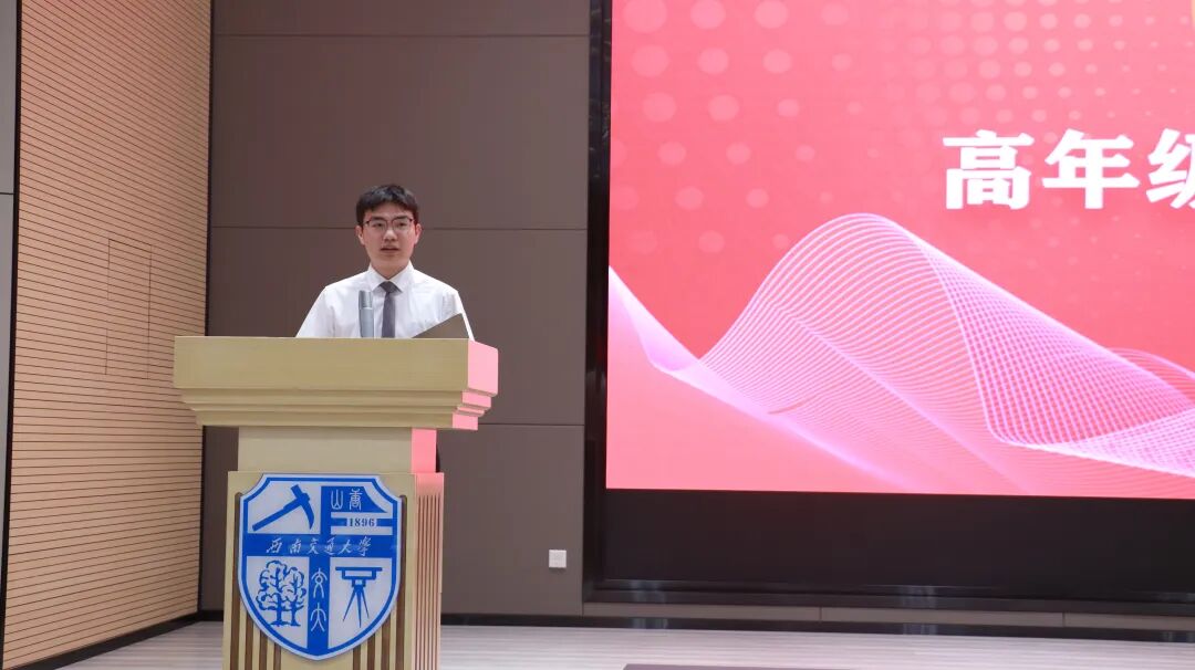 本科生新生代表2025级统计学专业徐可发言。徐可表示,数学是驱动科技进步的核心力量,交大数学人应当扎根理论、投身实践、勇担使命,以“竢实扬华”精神为引领,将个人理想融入强国建设,以数学之笔书写时代答卷。