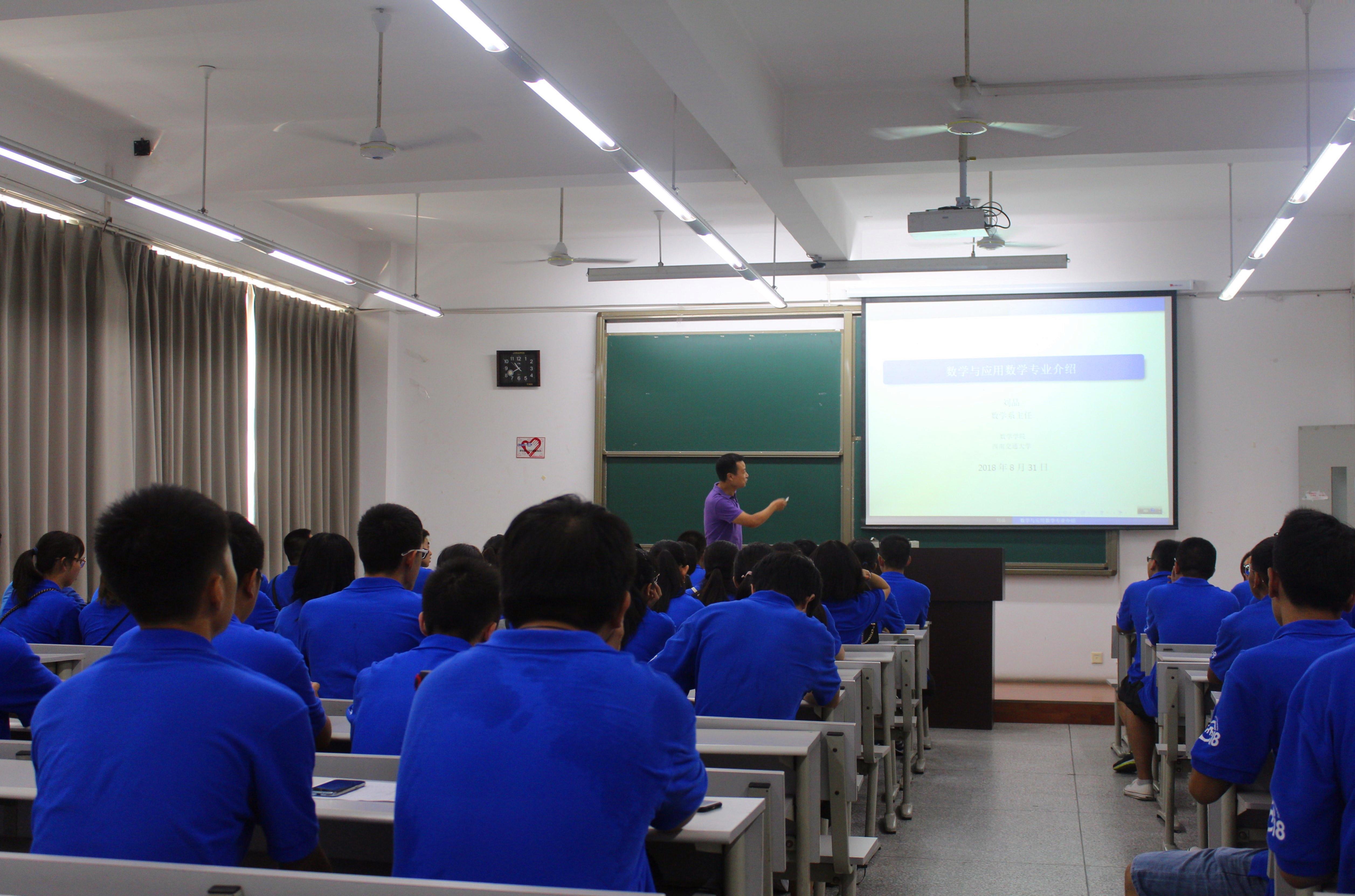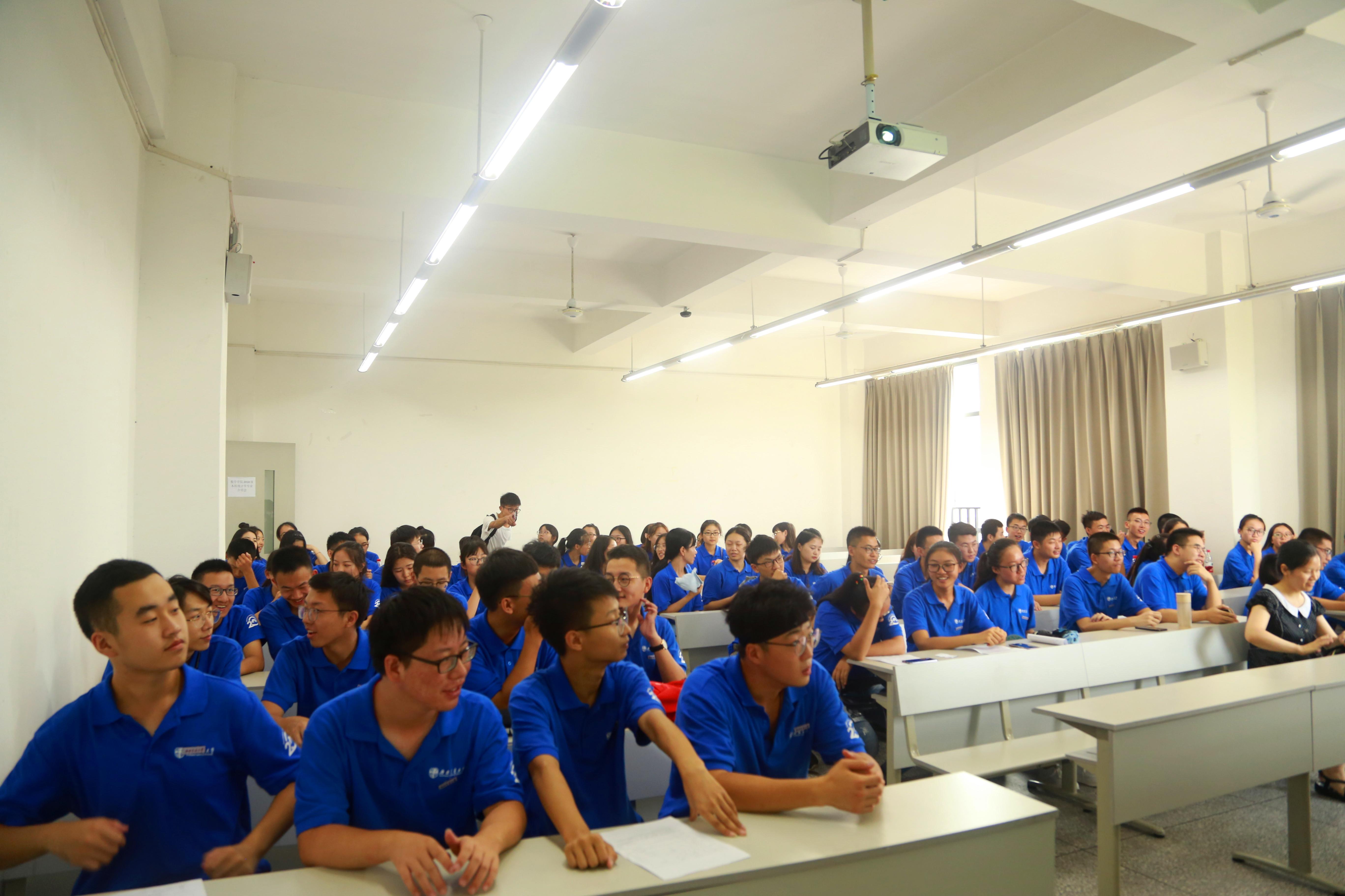 于9月1日10点30分在x8321、x8323分别召开了数学系和统计系的新生专业介绍会。专业介绍会由院长助理兼数学系副主任黎定仕老师和统计系主任唐家银老师主讲,同时出席的还有新生班导师王承竞、钟晓梅、刘鎏三位老师。