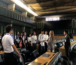 除了在中心的学习,我校学子还随队前往位于瑞士日内瓦、罗马等地的国际组织进行参访和学习。同学们近距离感受到了国际组织的多元化以及国际化工作氛围,并通过多场由不同部门国际职员带来的专题报告并收获了关于国际组织人才选拔标准、工作重点、如何推动联合国可持续发展目标及与青年发展相关的系列知识。