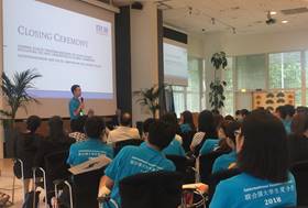 证书授予环节后,中心工作人员代表何季薇女士,学生代表方圆安、周毅恩和刘蒙分别上台发言,分享本次项目的学习心得和个人体会。之后,来自北京外国语大学的刘铁娃老师、浙江大学郑瑞老师及南京大学就业指导中心徐赫研老师作为高校带队老师代表分别上台发言。他们依次代表校方及参训学生对中心夏令营精心的组织与策划表示了不尽感谢,对学员学习情况进行了总结。