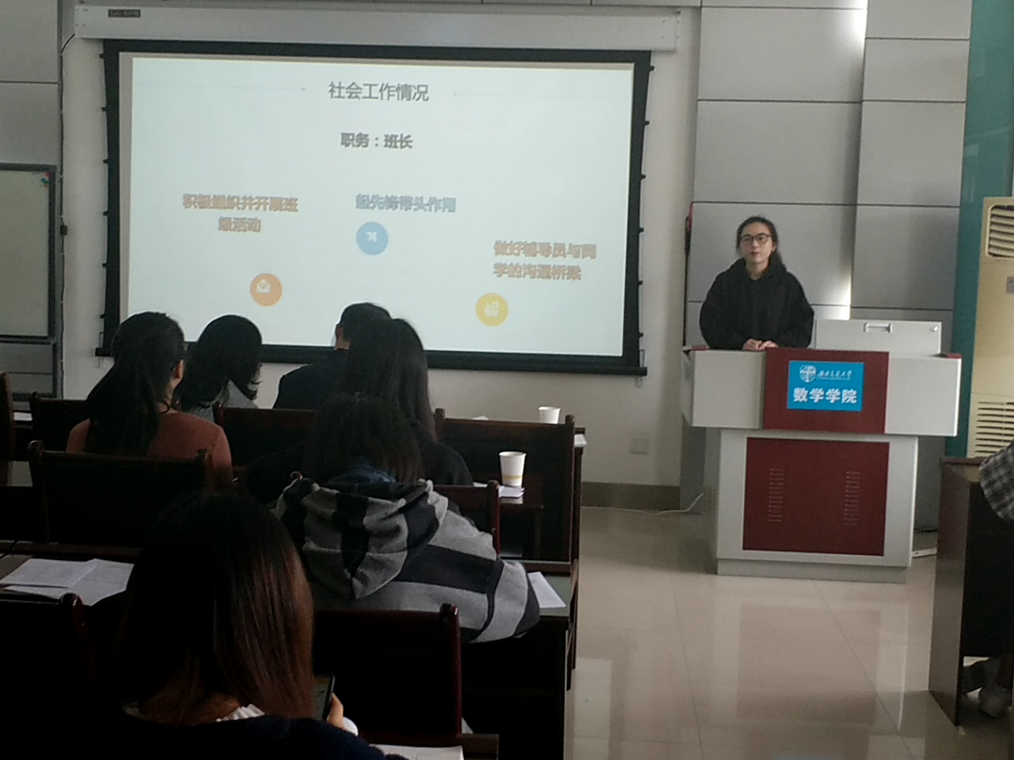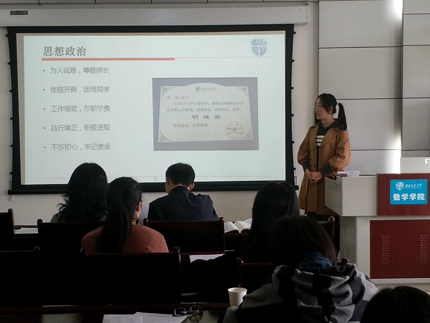 严格按照学校要求,经过了发布通知、个人申请、辅导员资格审查、班级民主评议等环节,将各类奖学金的优秀候选人推选入答辩环节。本次答辩评审的奖项包括竢实扬华奖章、本科生省级优秀毕业生、三好学生标兵、研究生优秀毕业生以及研究生标兵。