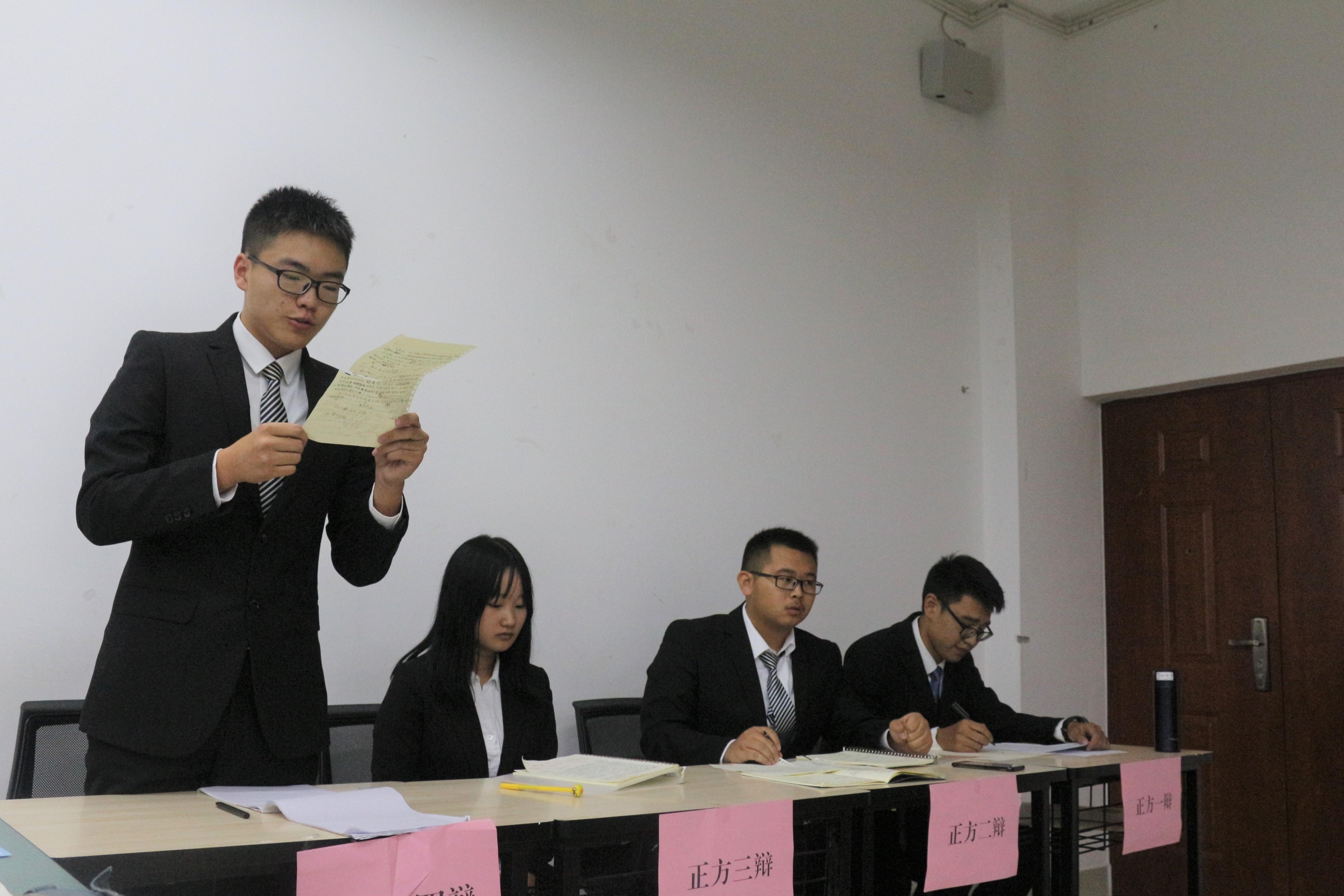 经过短暂的观众提问后,比赛进入总结阶段。2015级辩论队队长吕艳新对辩论双方的出现的不足与缺点进行了详细的分析评价,给辩论双方上了一堂生动的辩论课。
