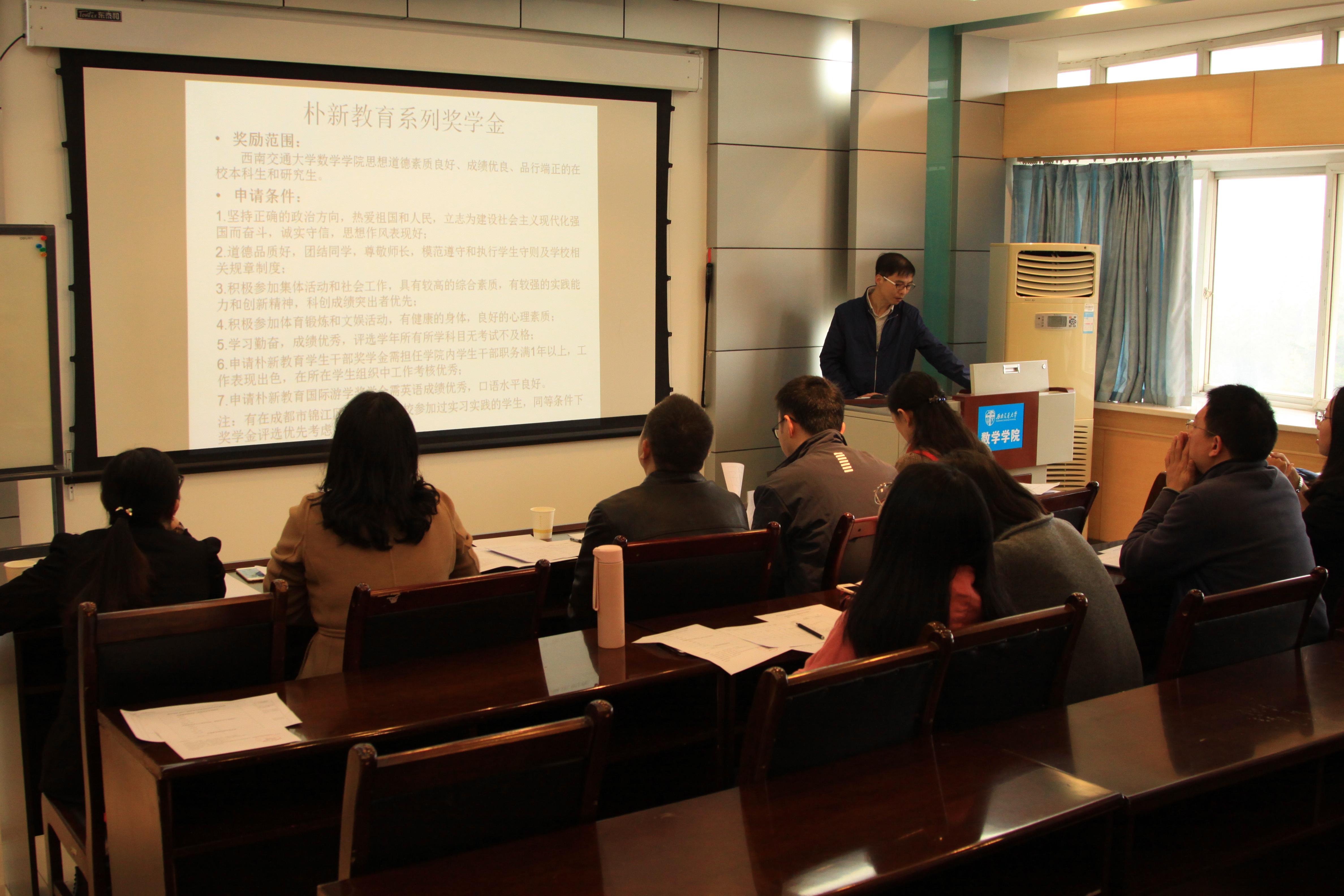 10月17日上午10点,在X2511教室举行了西南交通大学朴新教育系列奖学金评选答辩活动。本次答辩会特别邀请到了朴新成都学校校长助理兼个性化事业部总监王艳艳、朴新成都学校个性化事业部综合办主任康娟作为企业评委代表出席,同时担任评委的还有澳门六合彩开奖结果