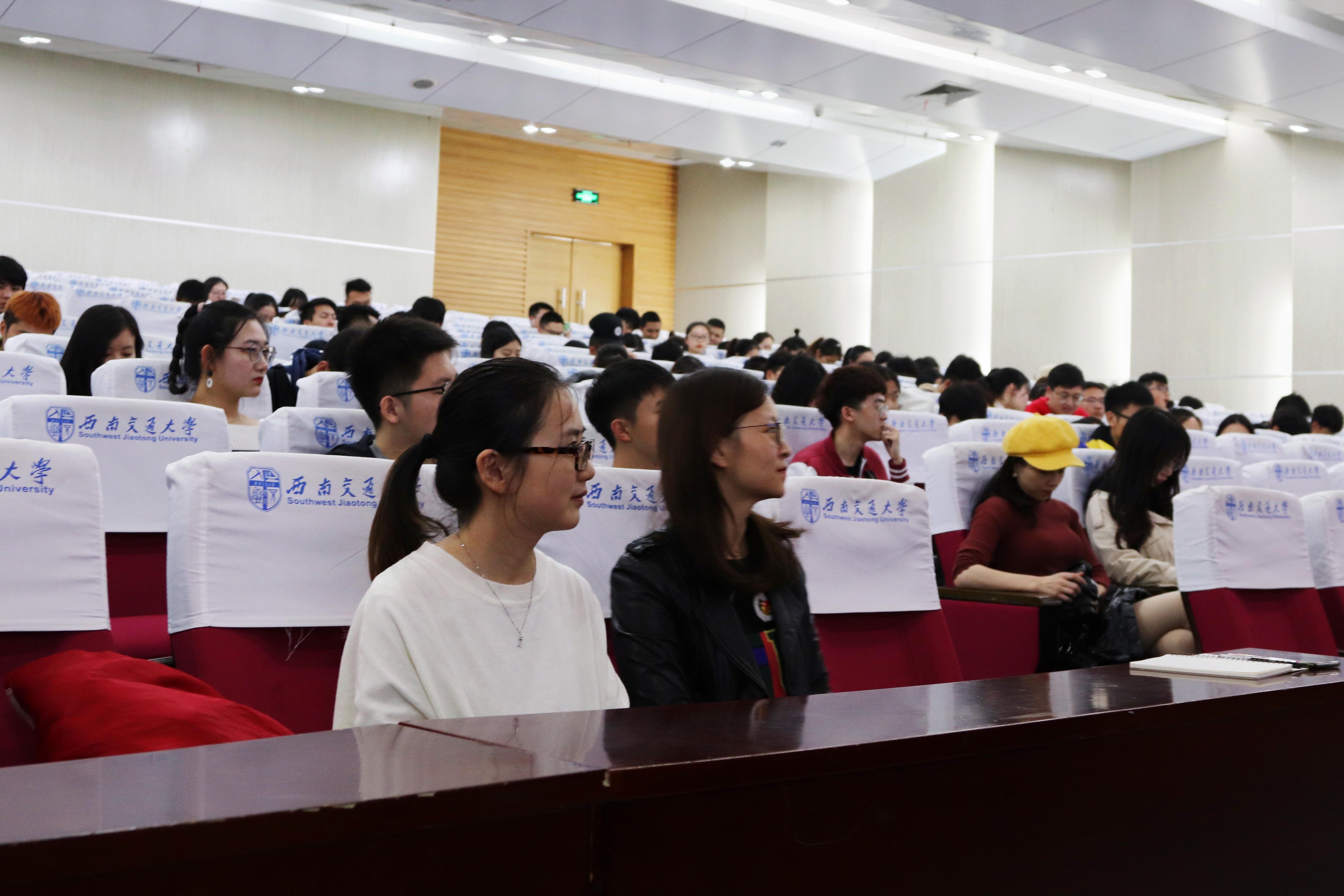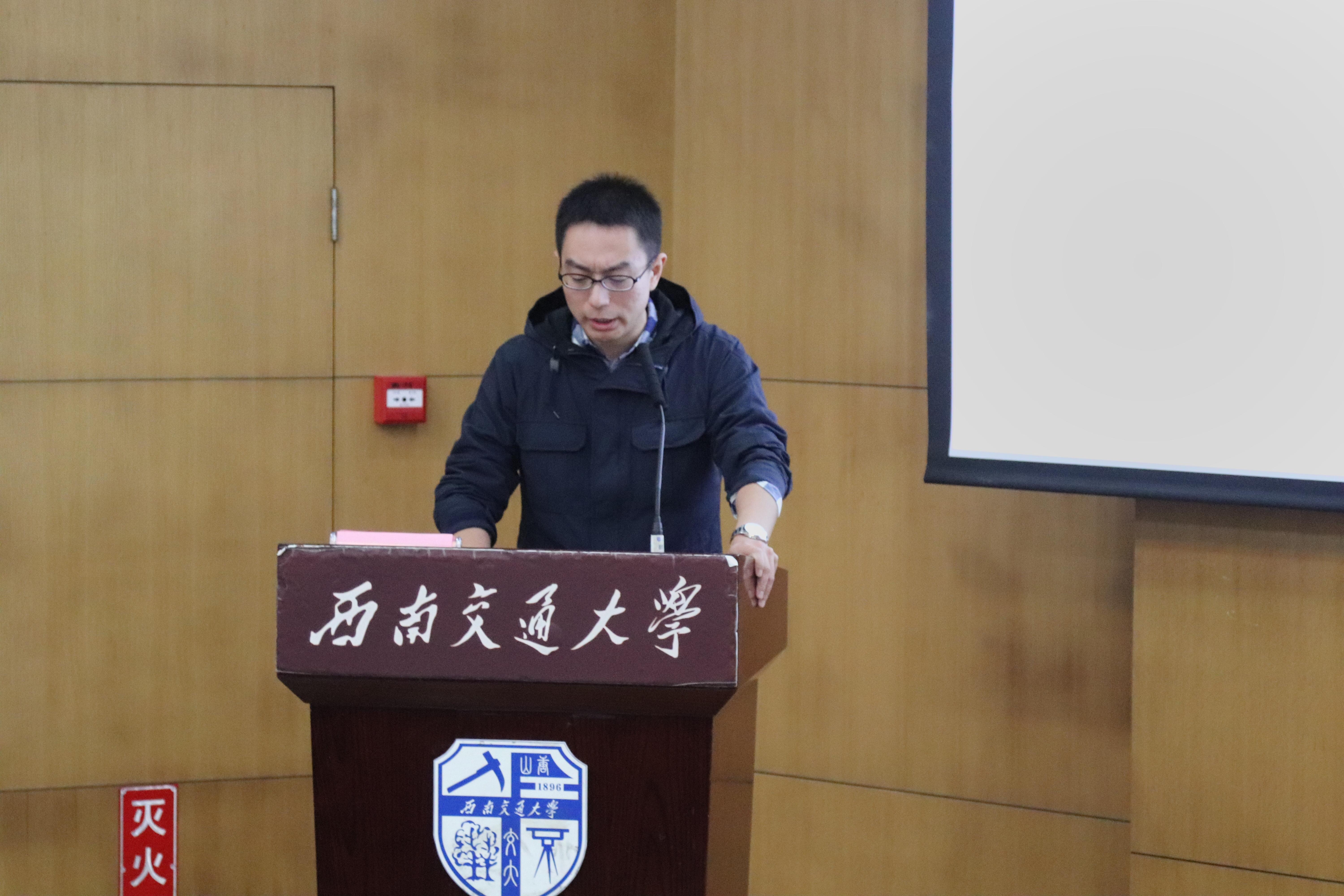 何薇教授主讲,何教授通过介绍苏联共产党74年的兴衰史,引出了这次讲座的主题“不忘初心,牢记使命”。紧接着,何教授以翔实的史料,生动的案例和亲切的语言为同学们详细讲述了习近平总书记的重要讲话和新中国成立70周年取得的历史性成就。最后,陈晨老师上台致辞,希望所有到场的同学们能够汇聚青春力量,争做新时代马克思主义者,书写中国梦的西南交大篇章。